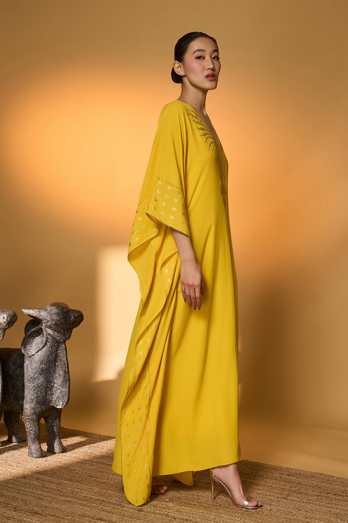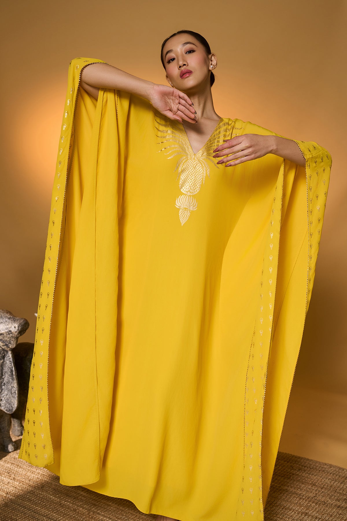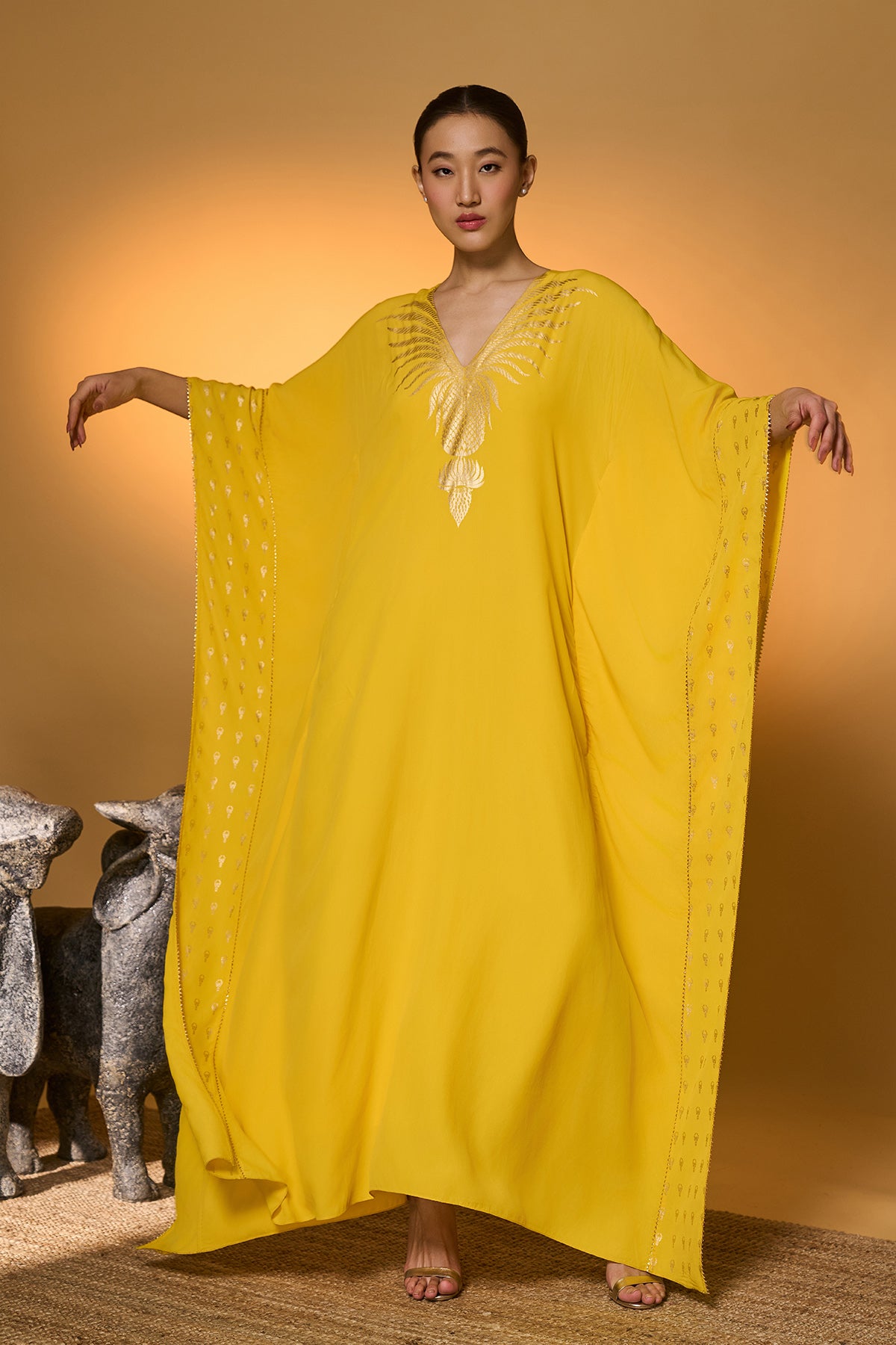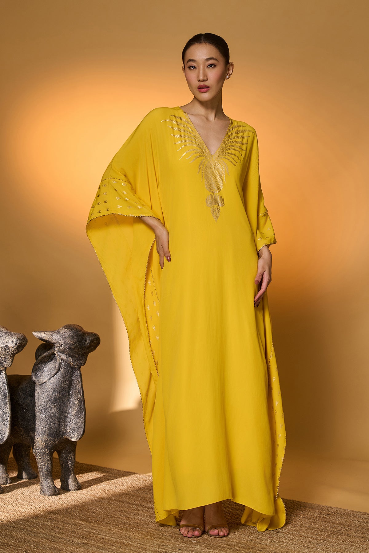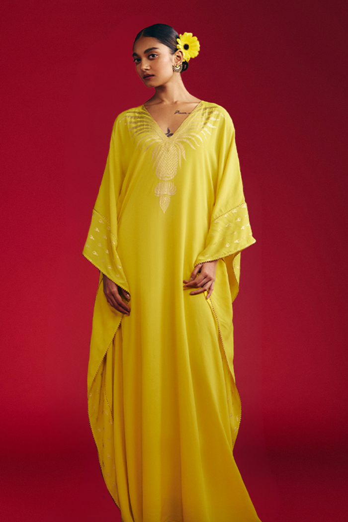 Yellow Tribal Mask Kaftan