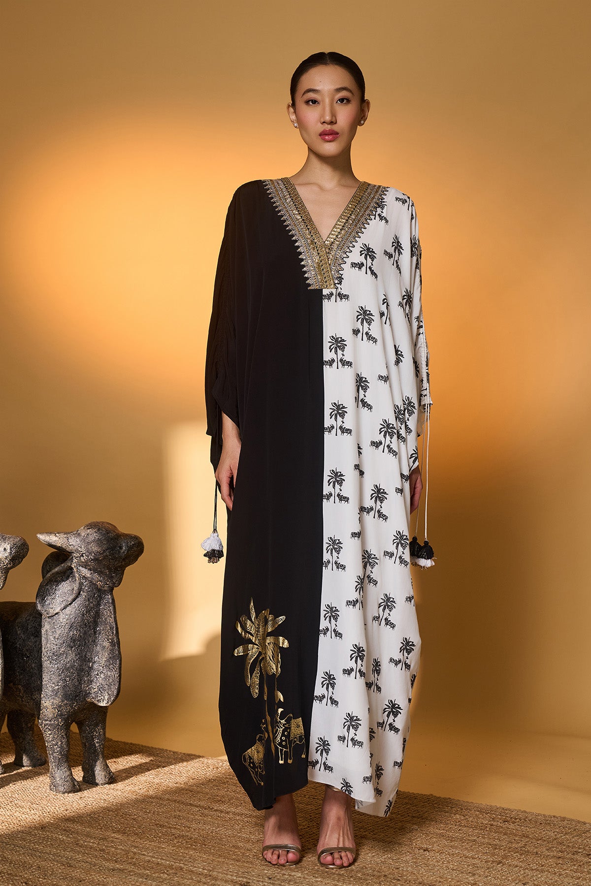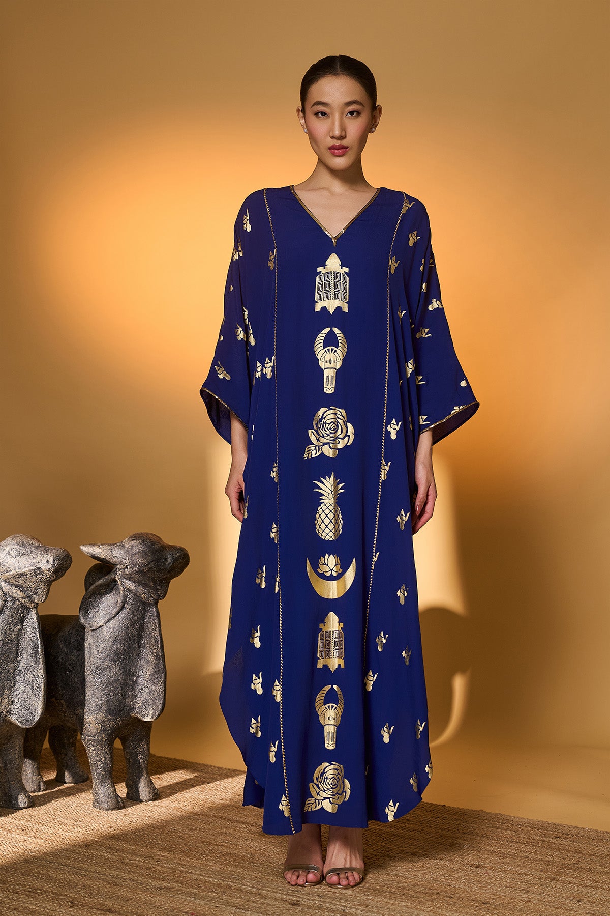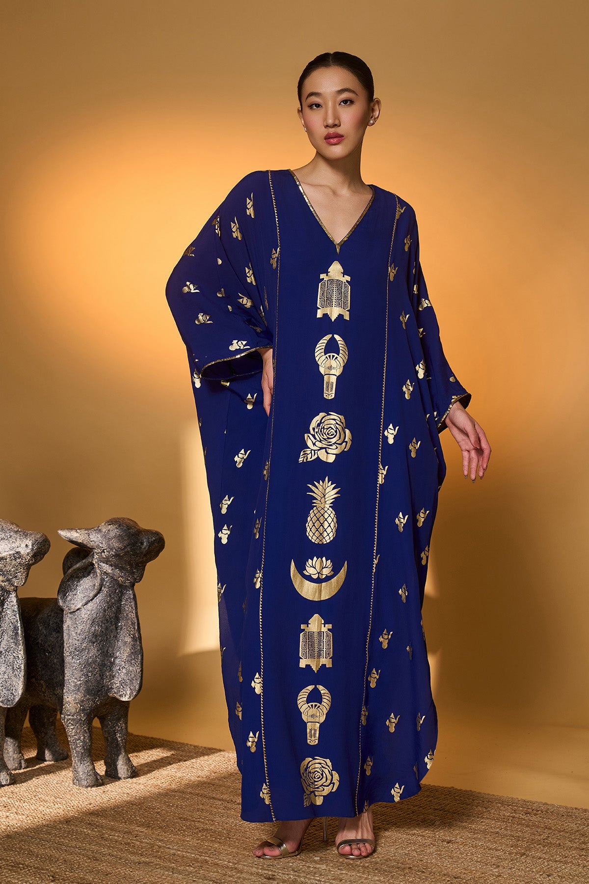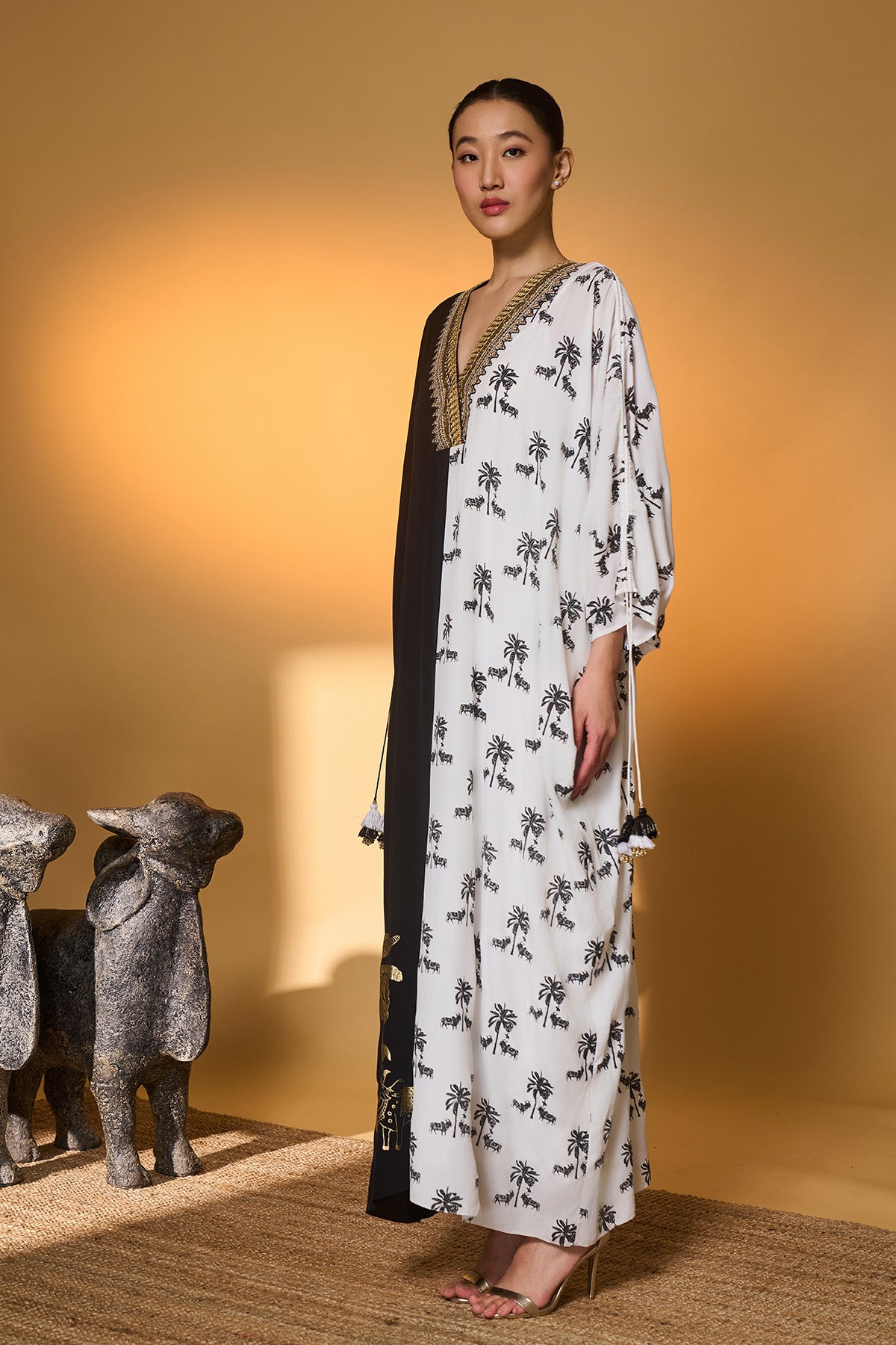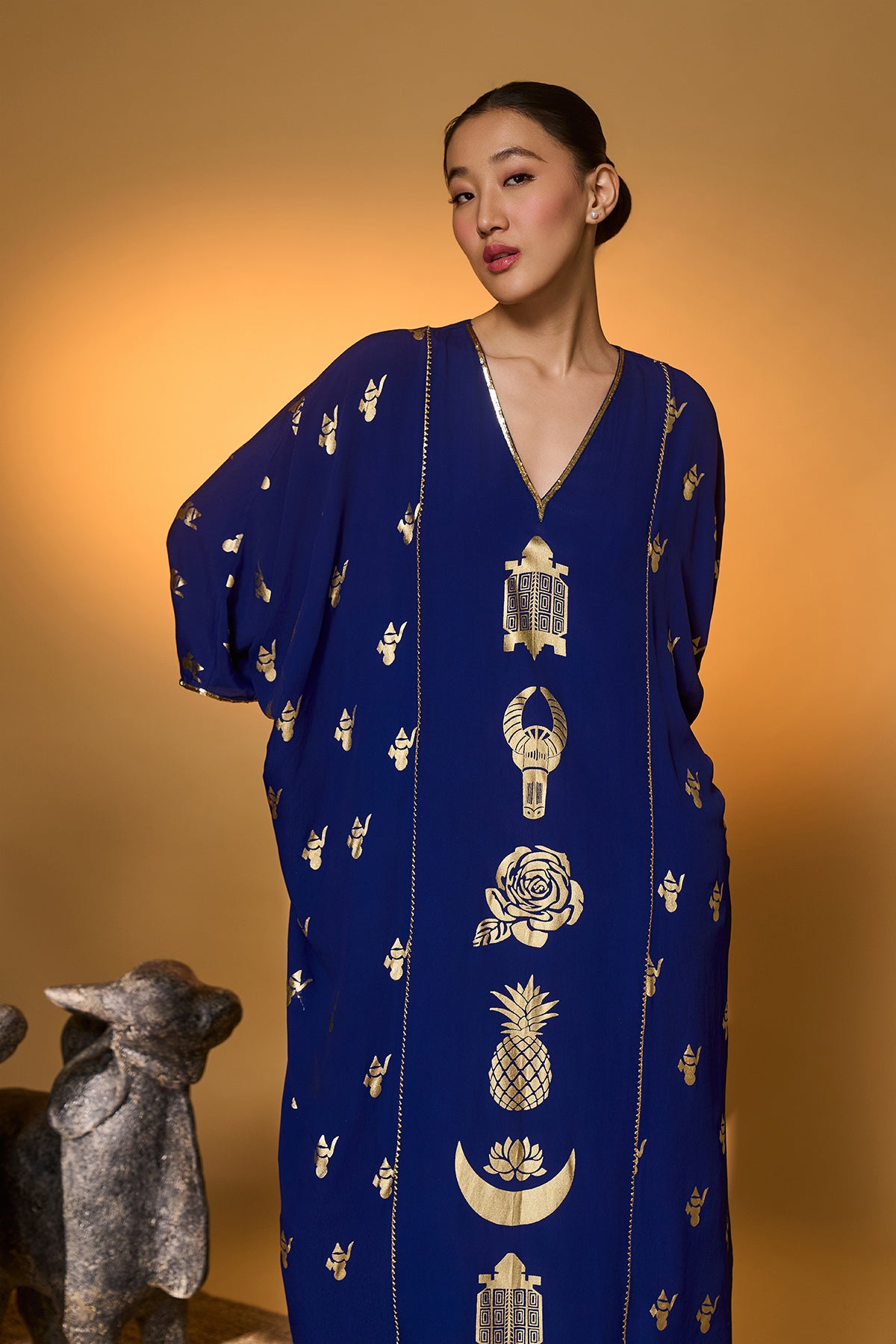 Yellow Tribal Mask Kaftan