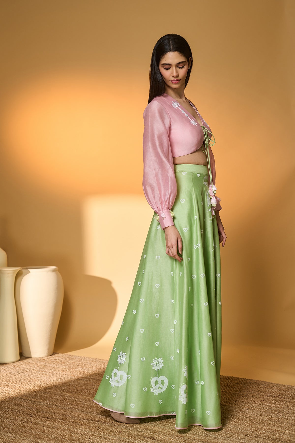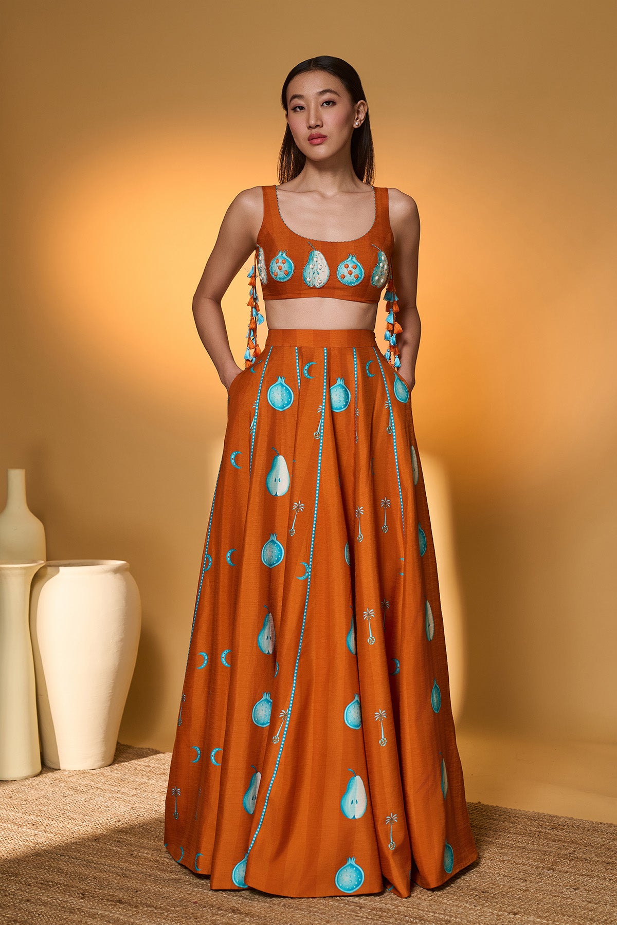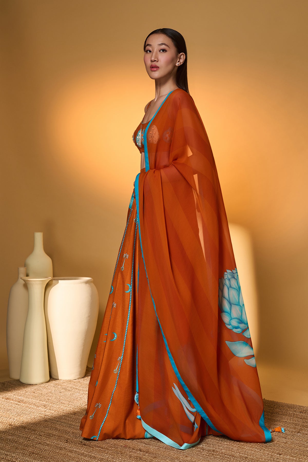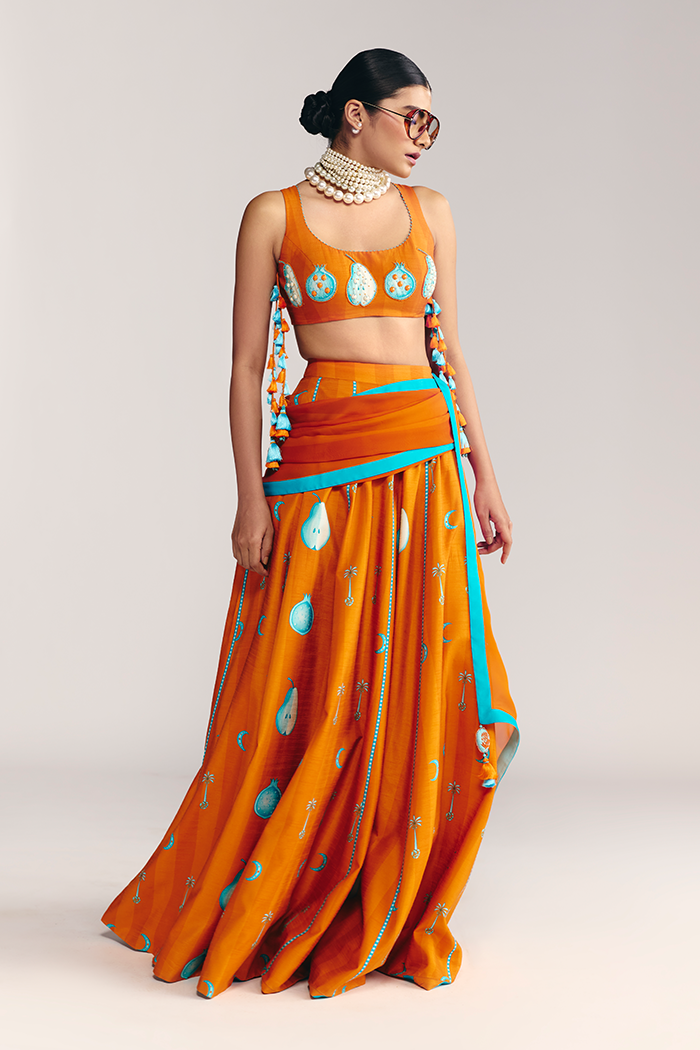 Saffron Sky Striped Lehenga Set