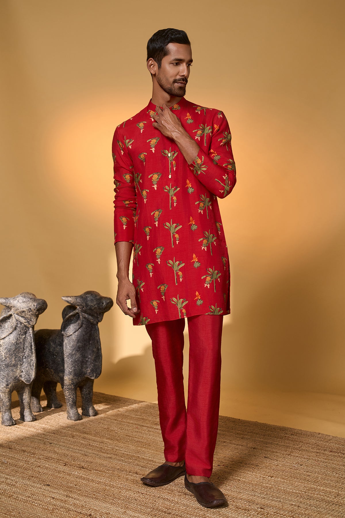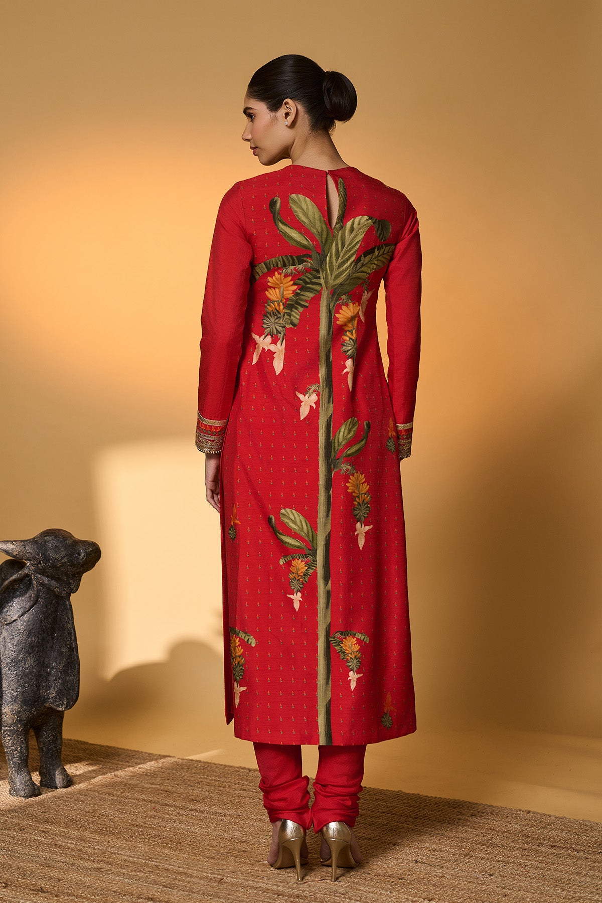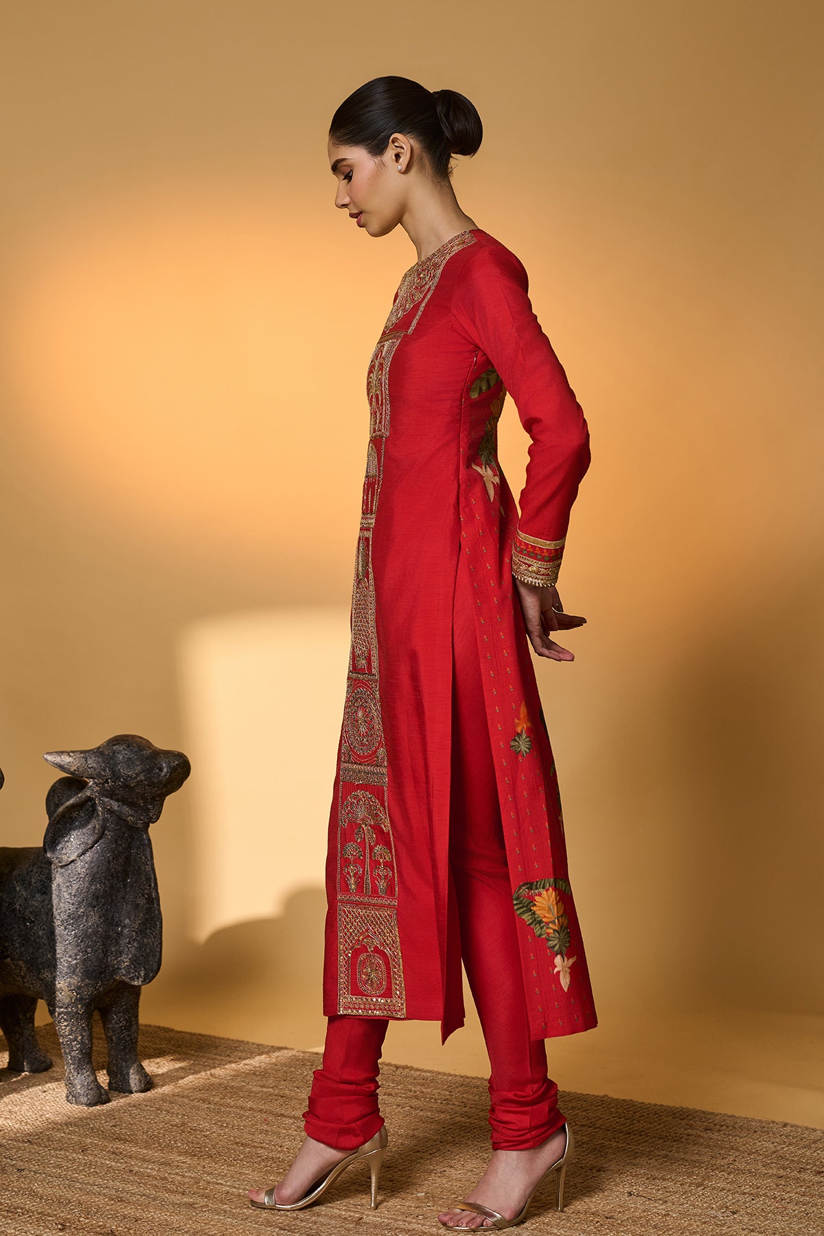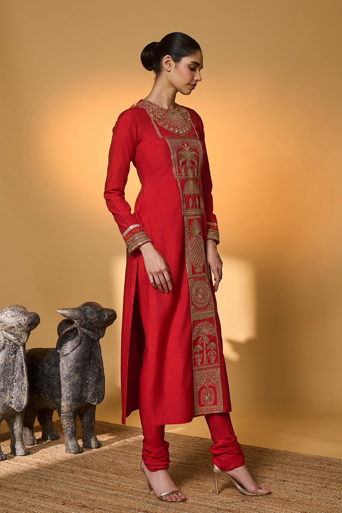 Red Khidki Kurta Set