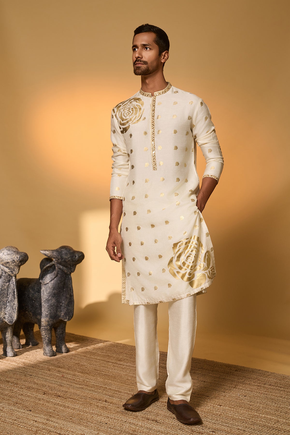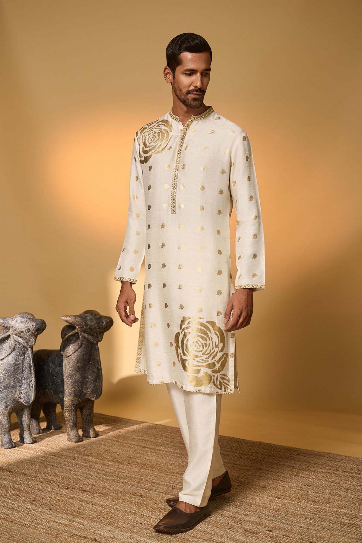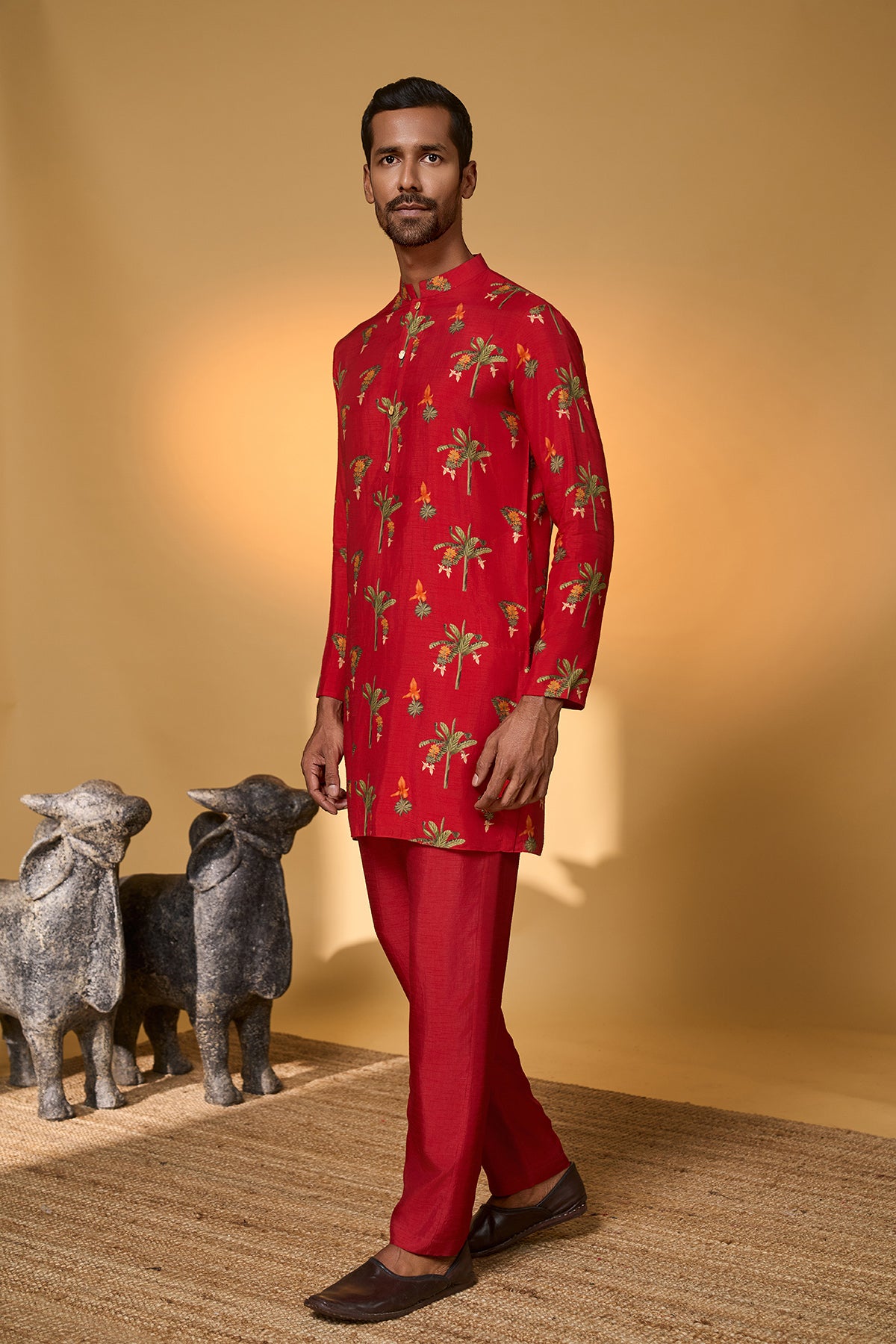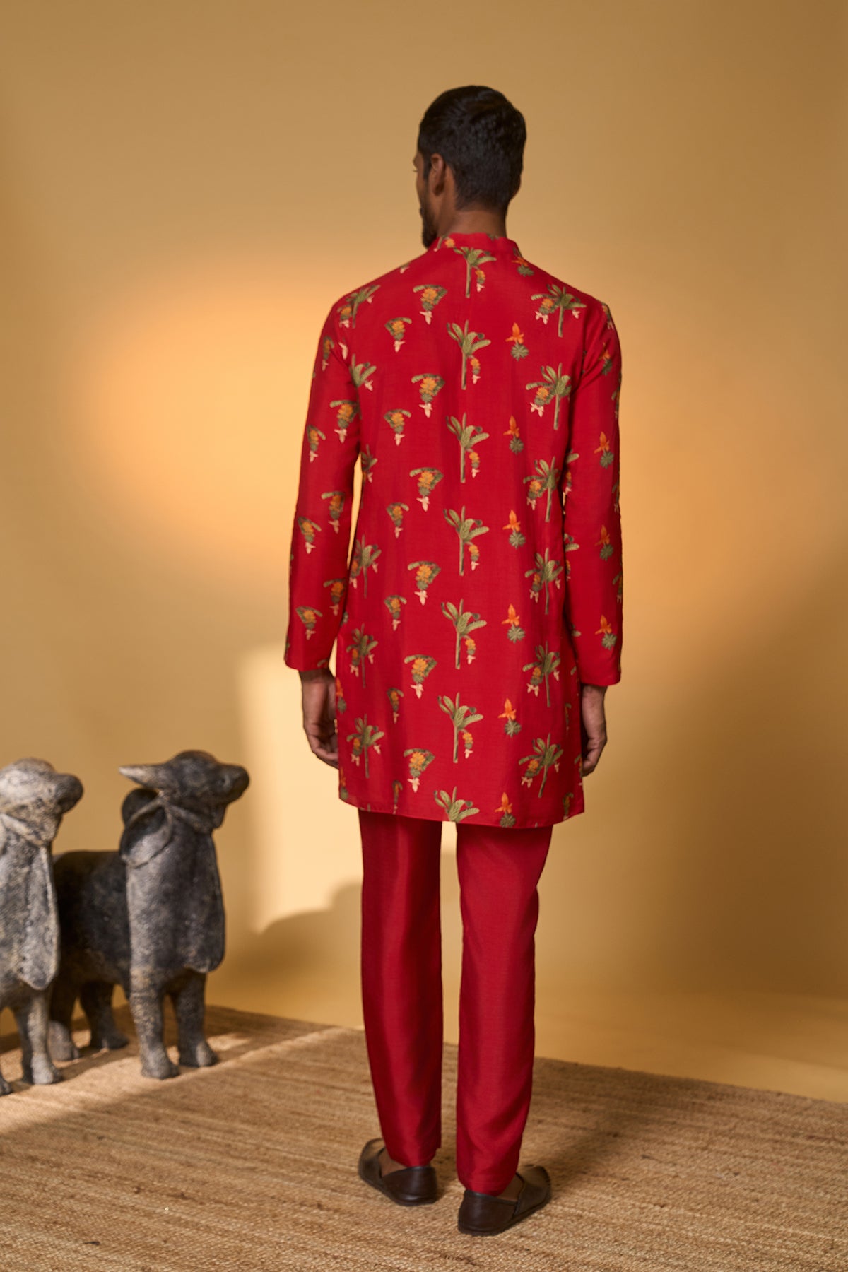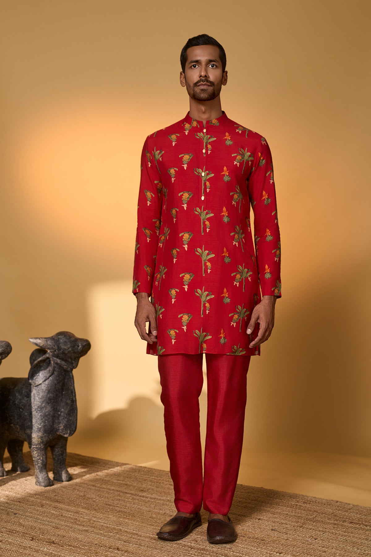 Red Khidki Kurta Set