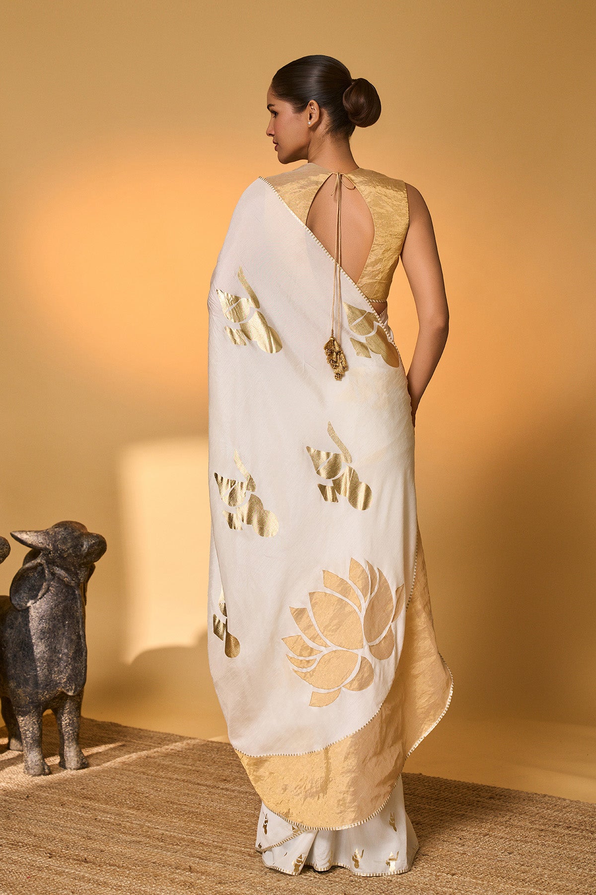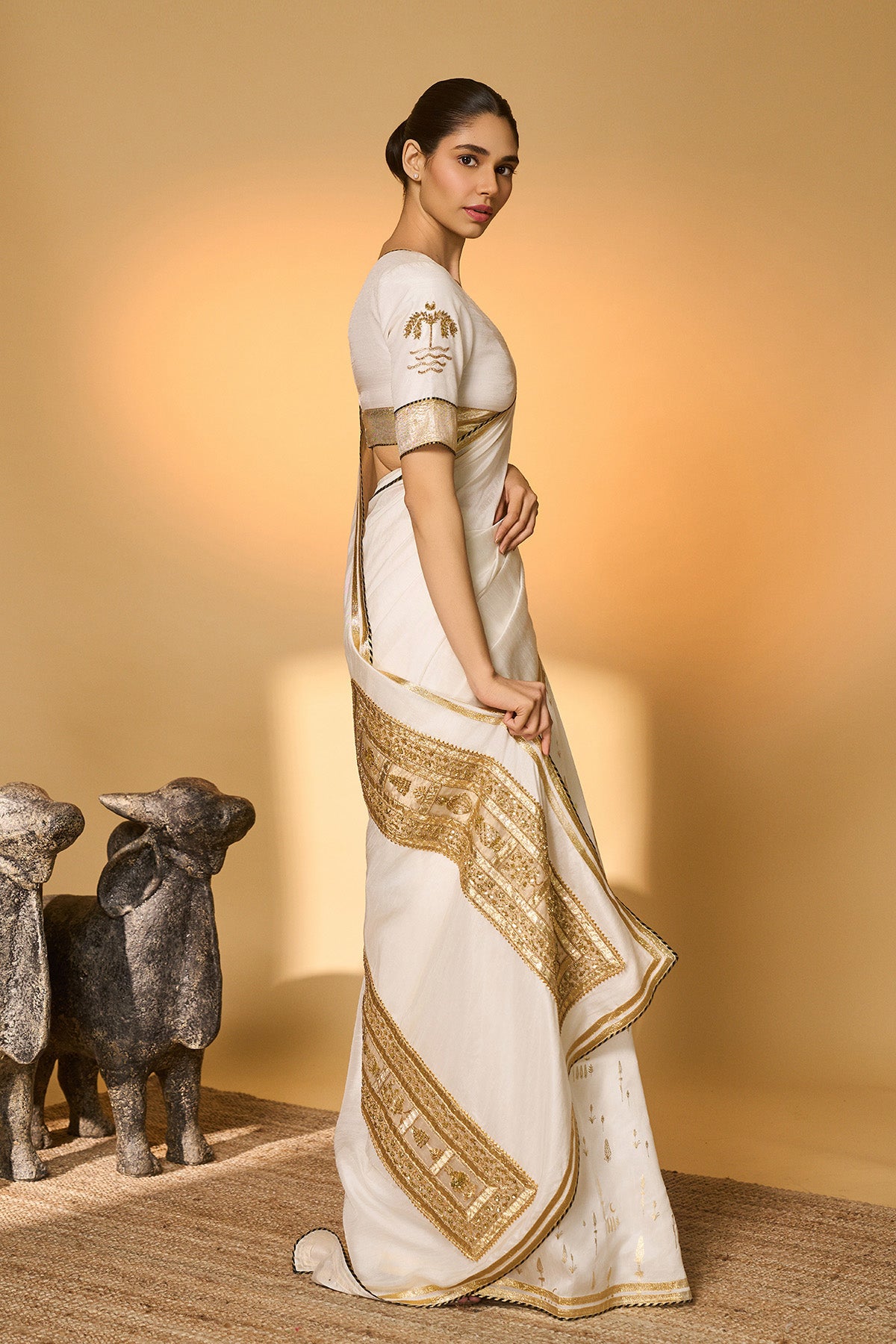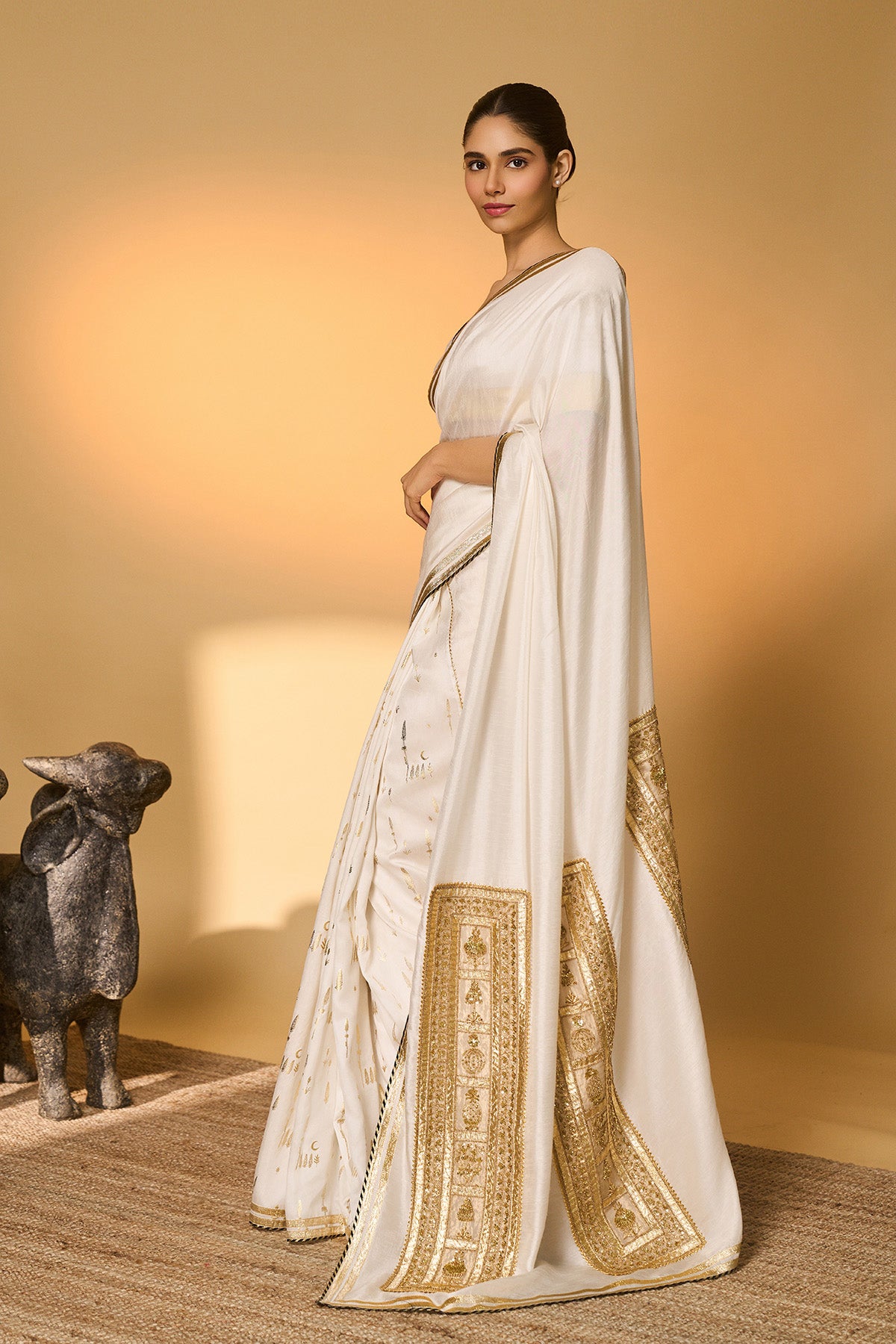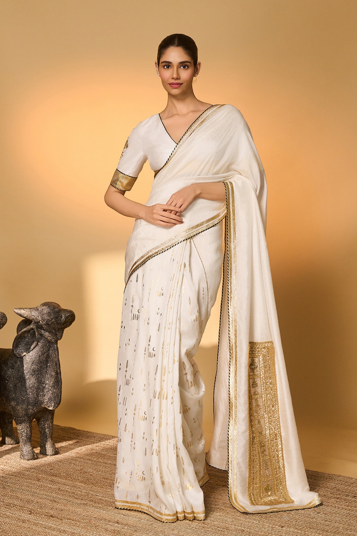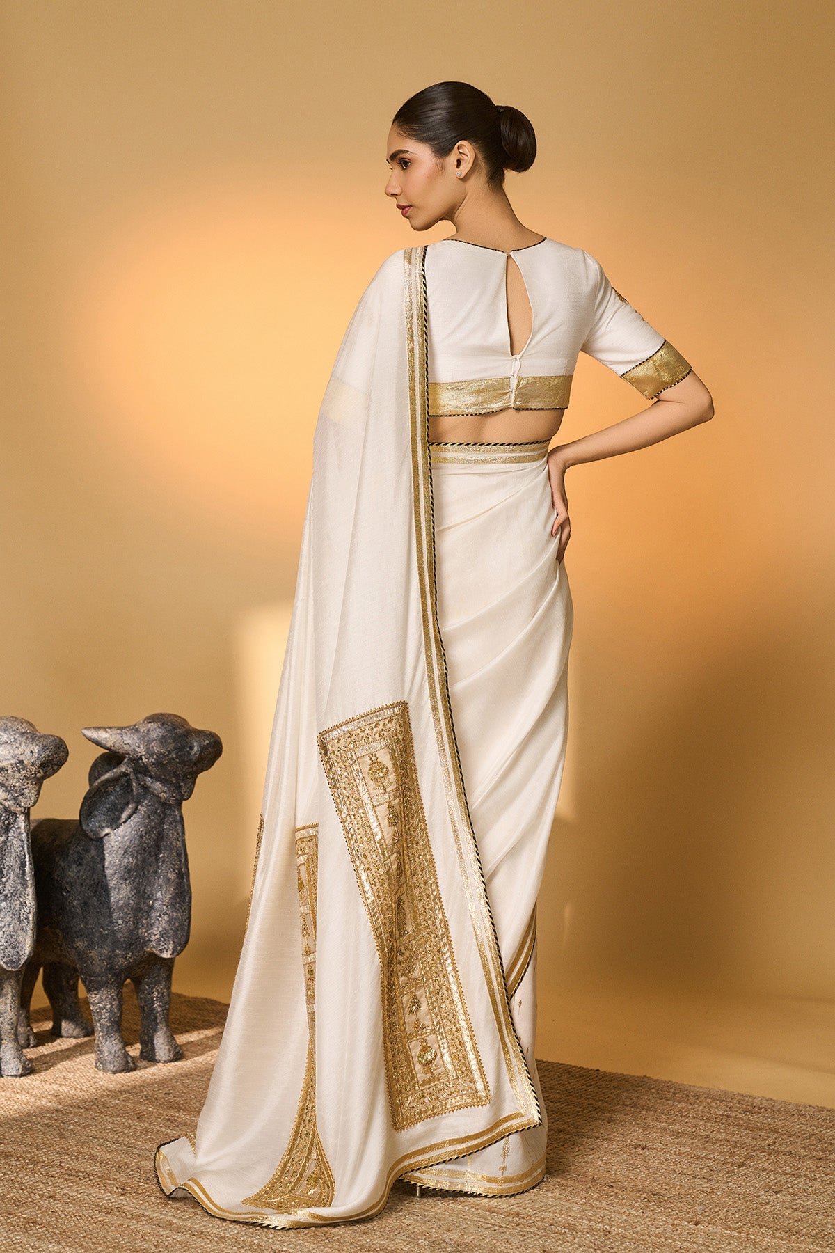 White Moonfield Gota Embroidered Saree
