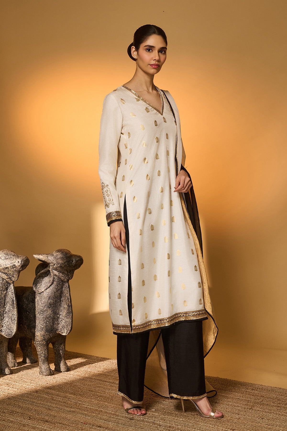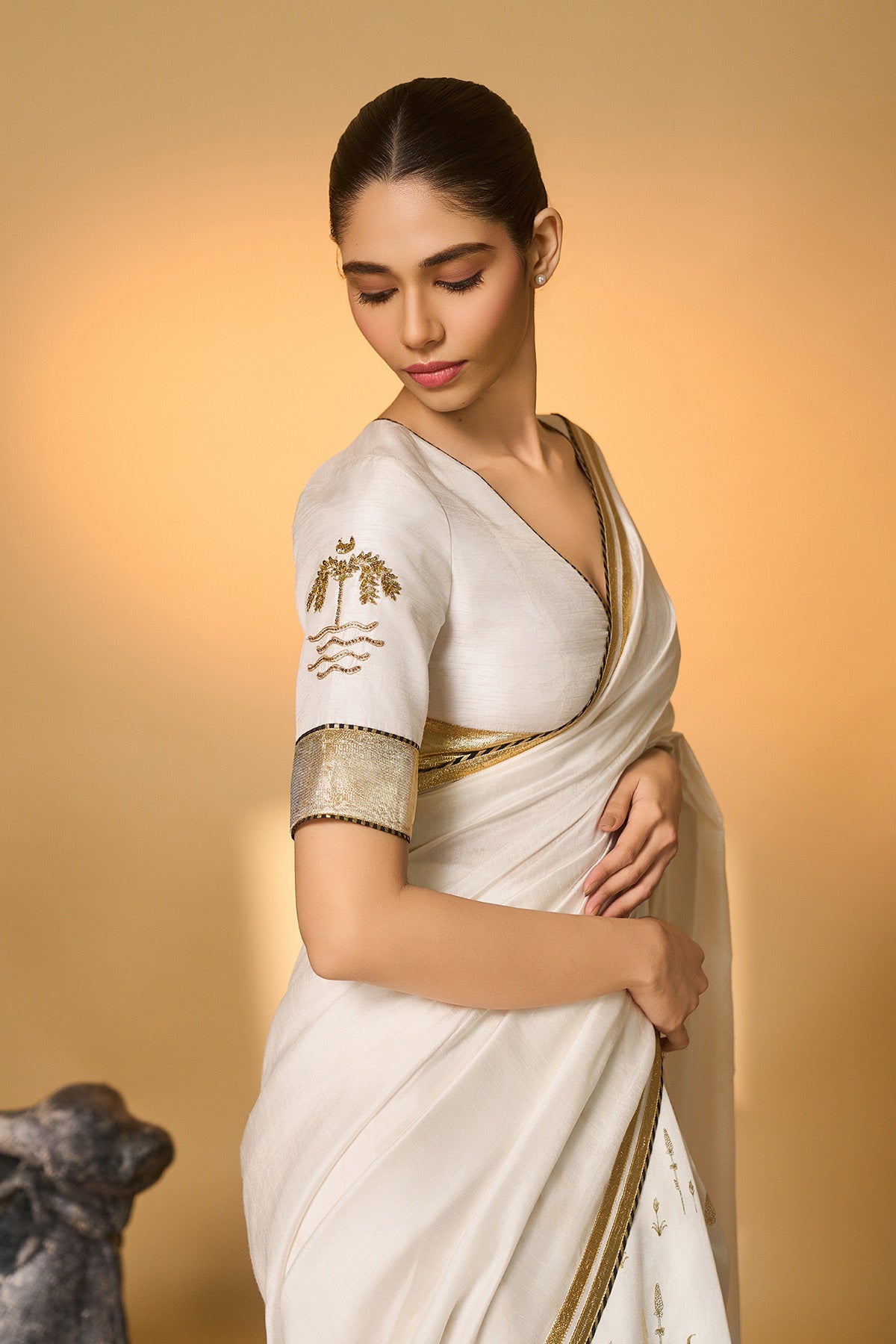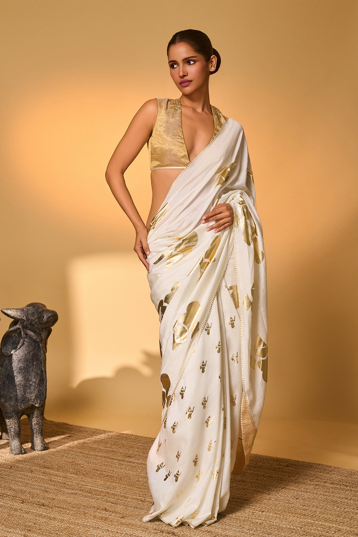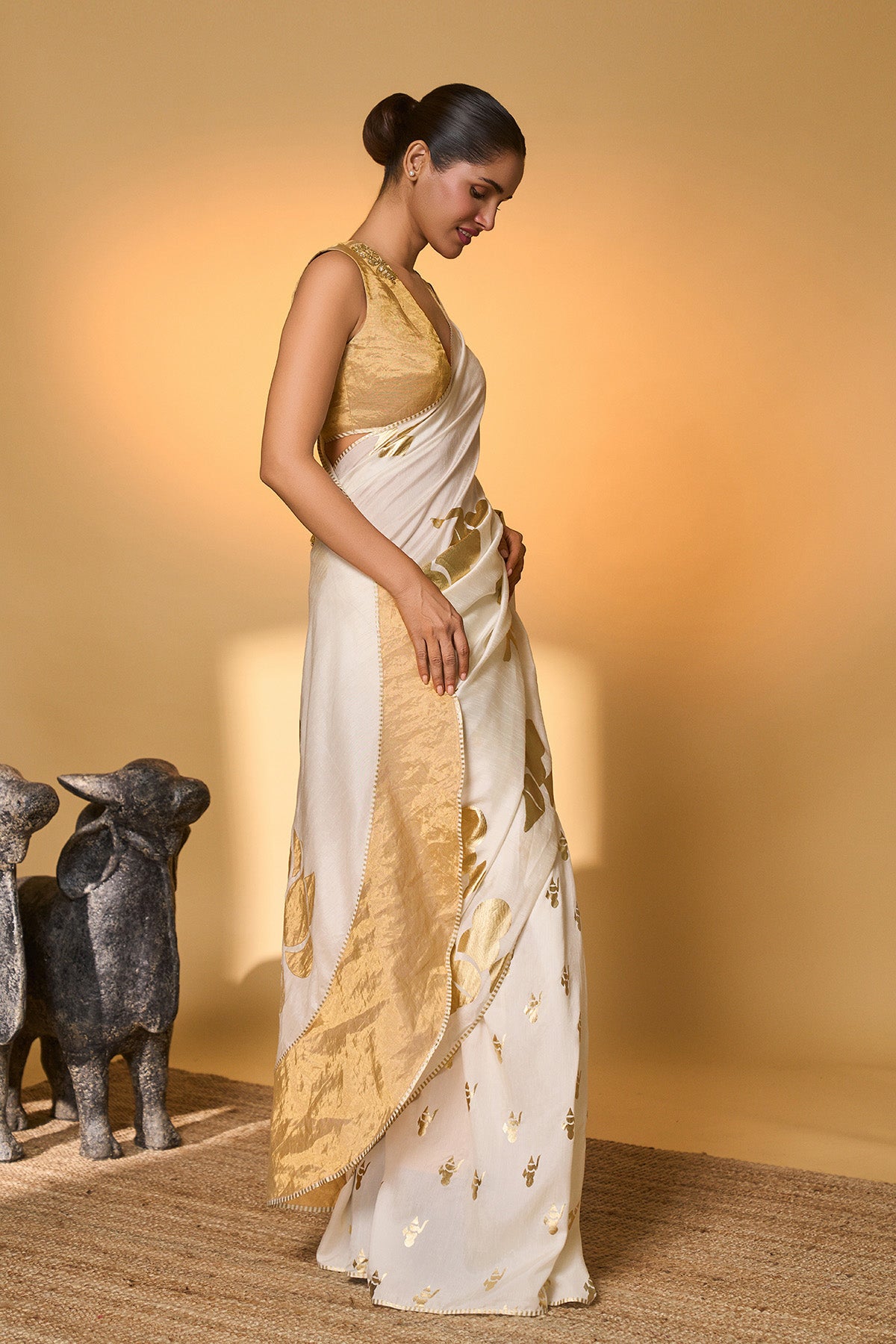 White Moonfield Gota Embroidered Saree