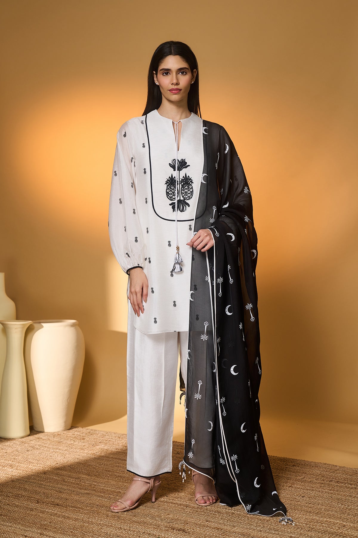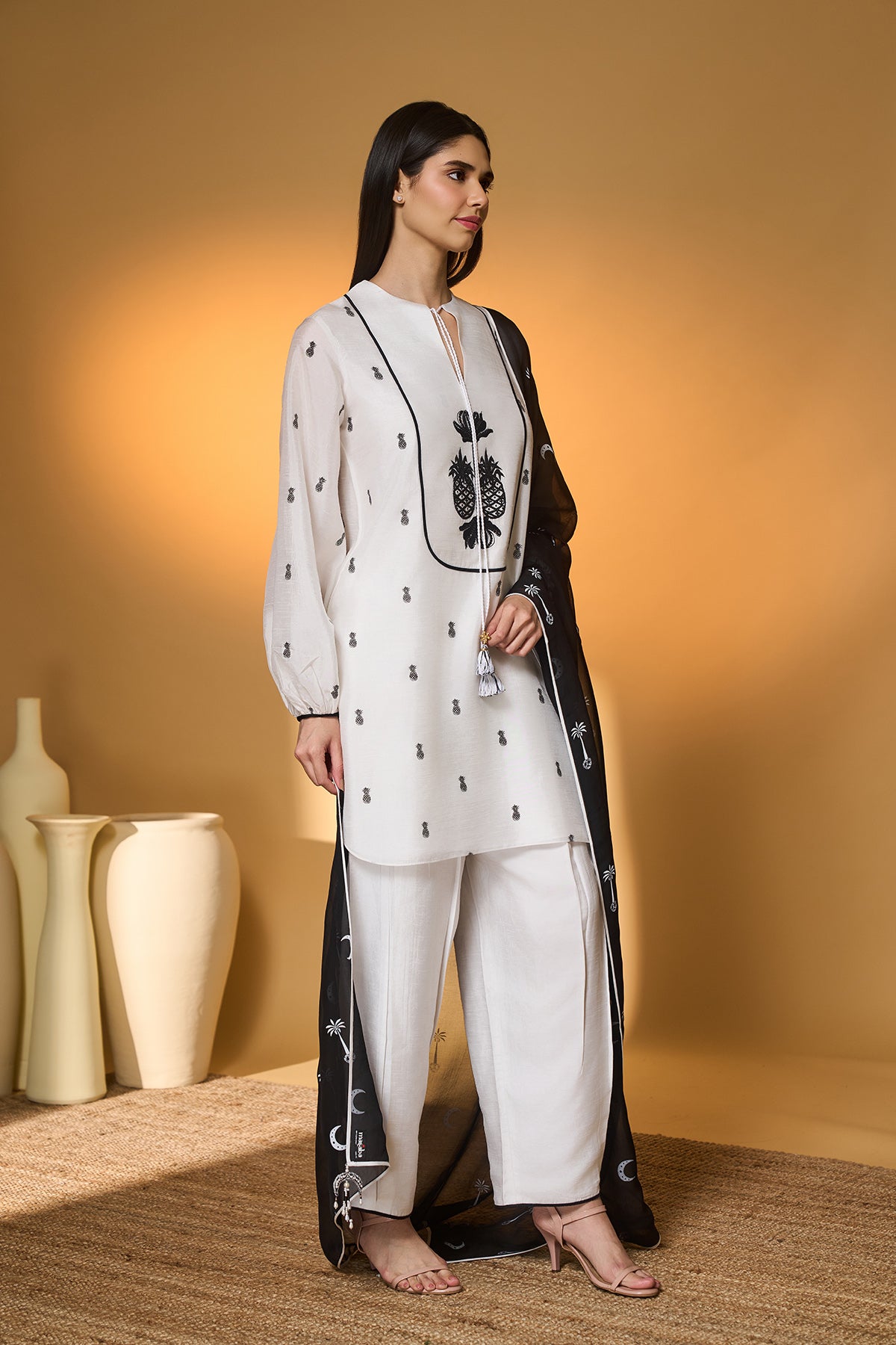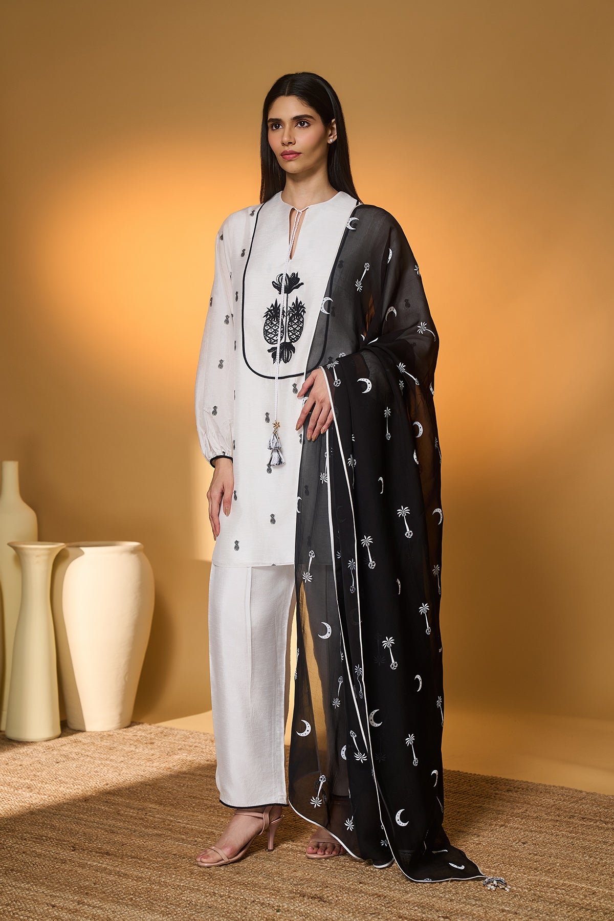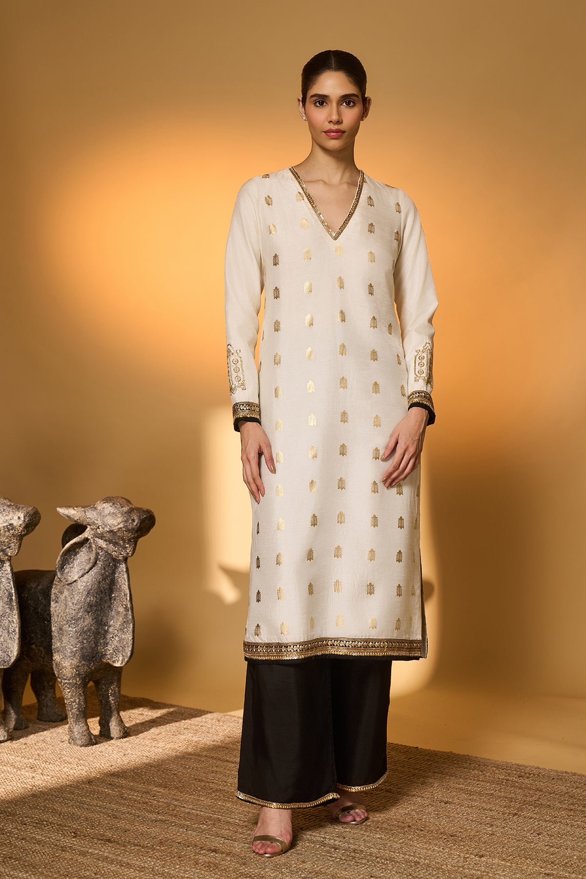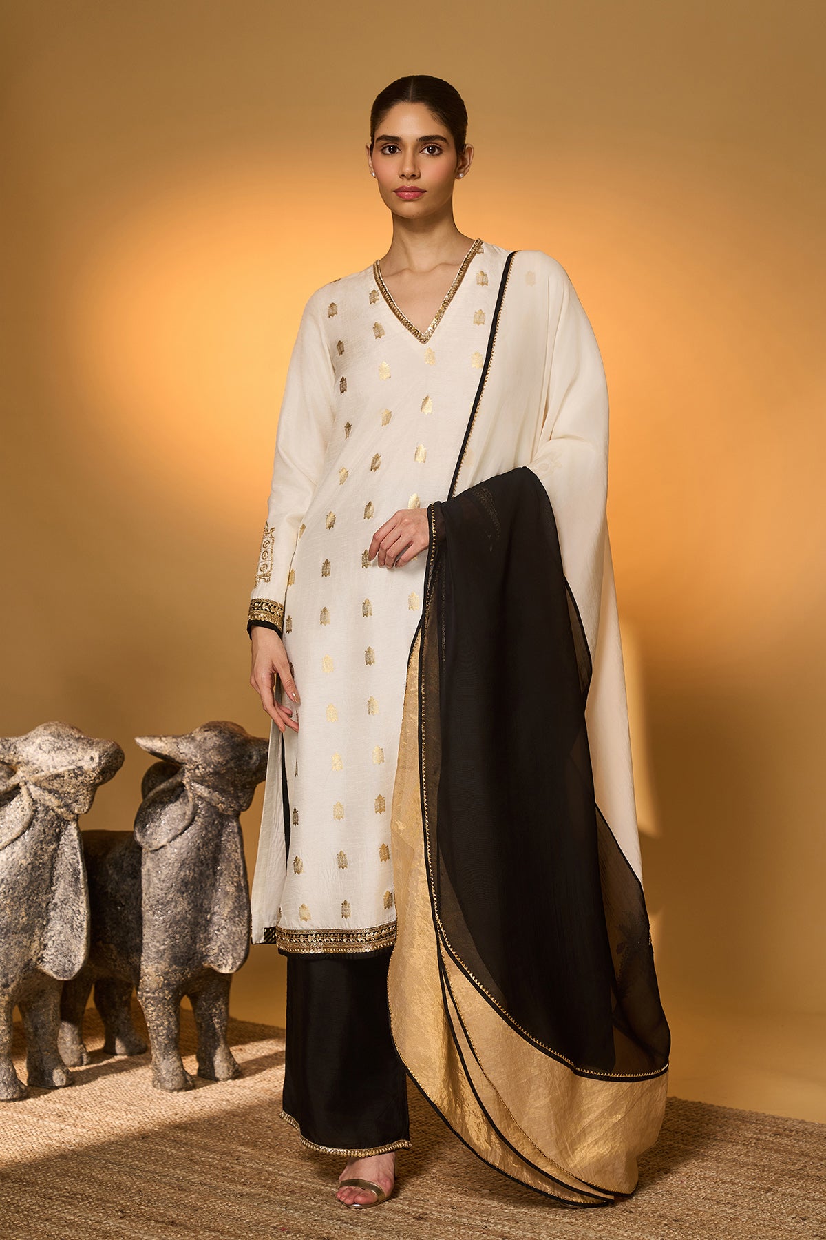 White Moonfield Gota Embroidered Saree