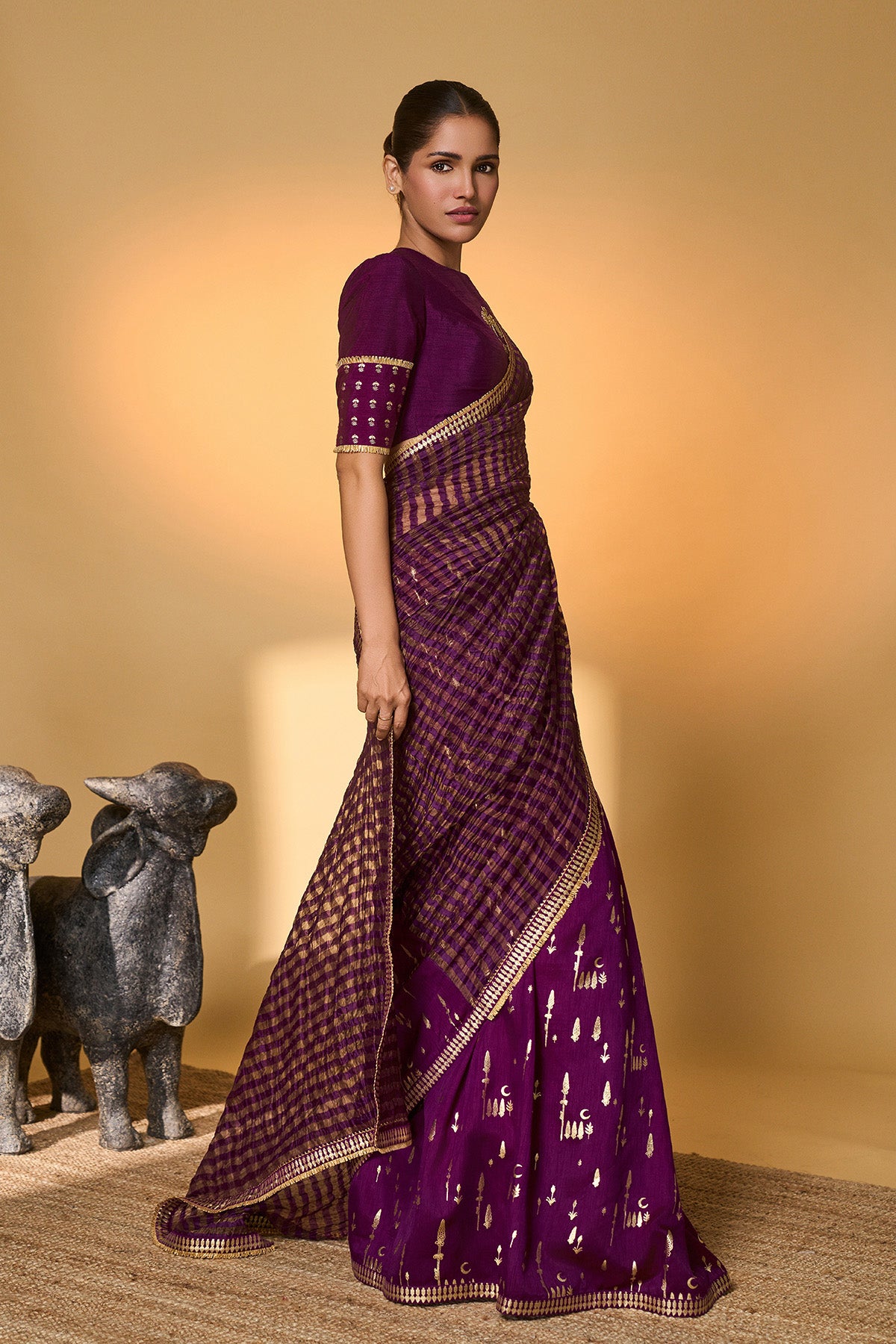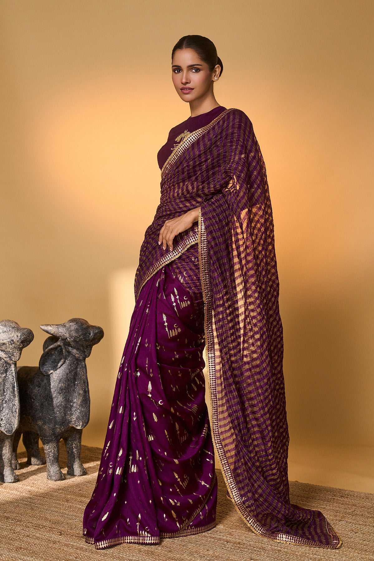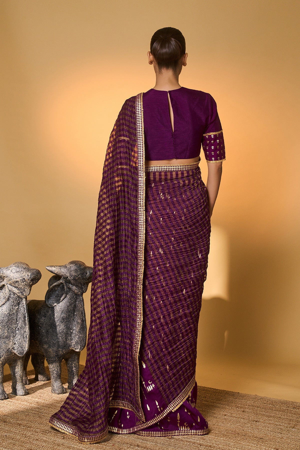 Plum Corncrest Gota Saree