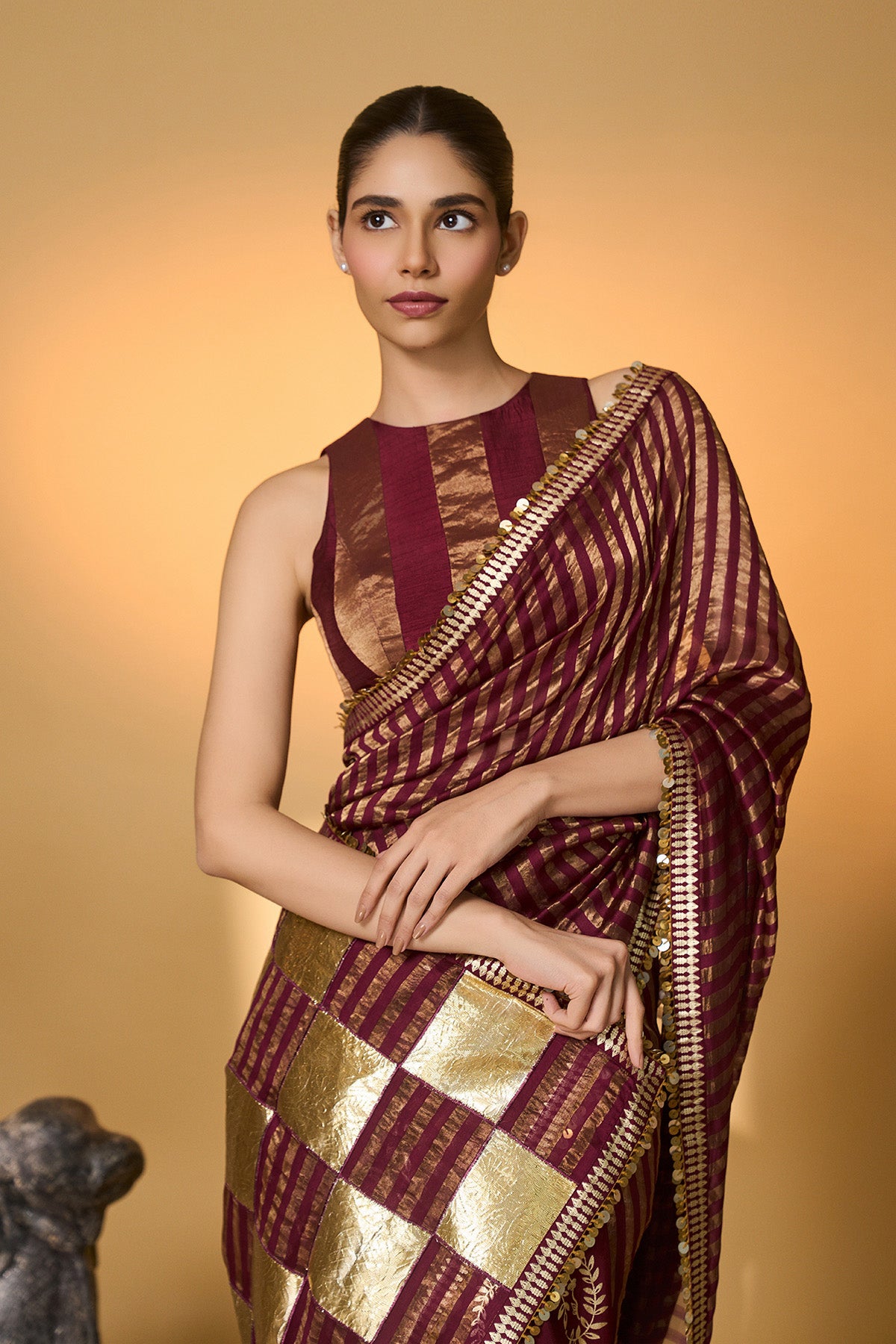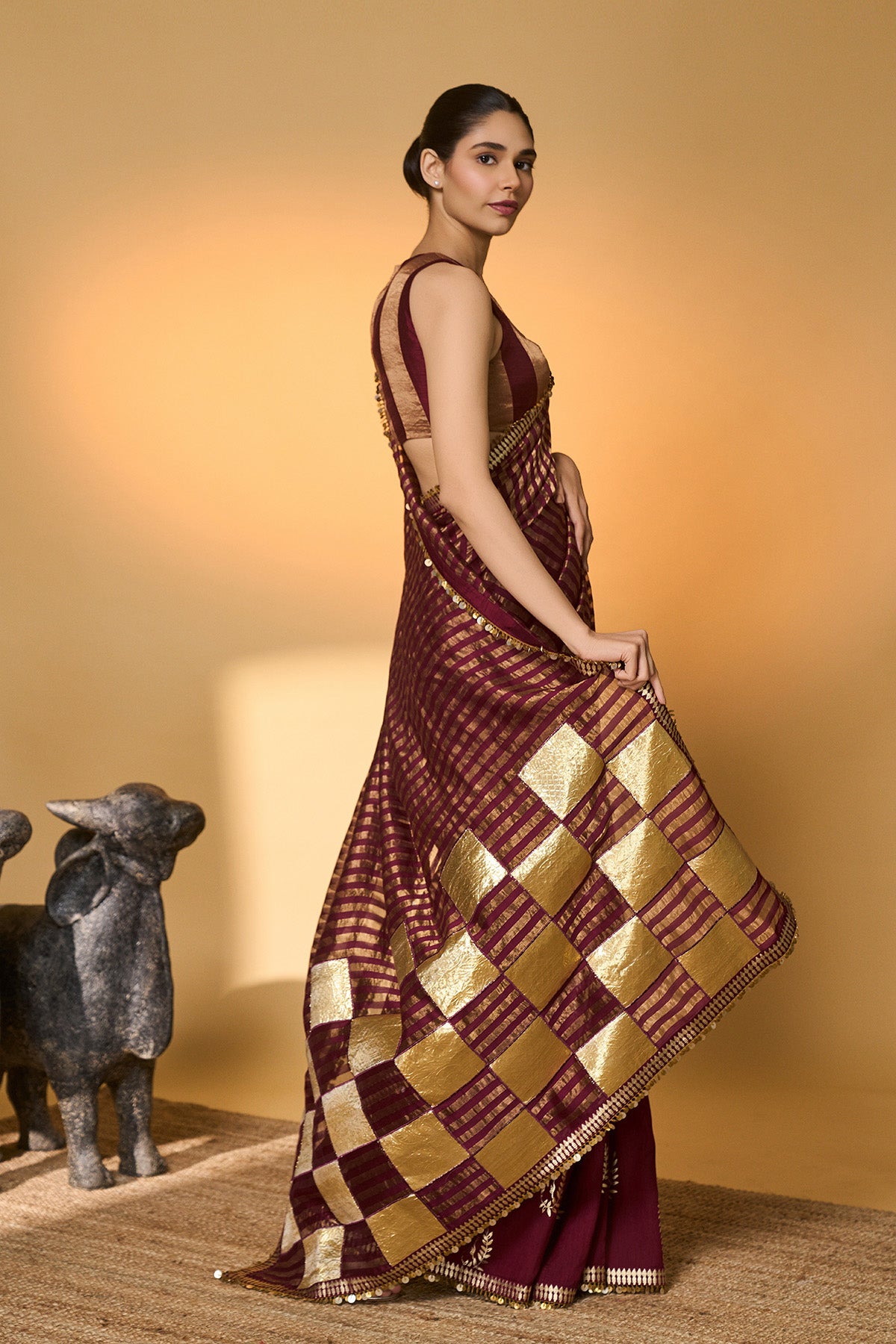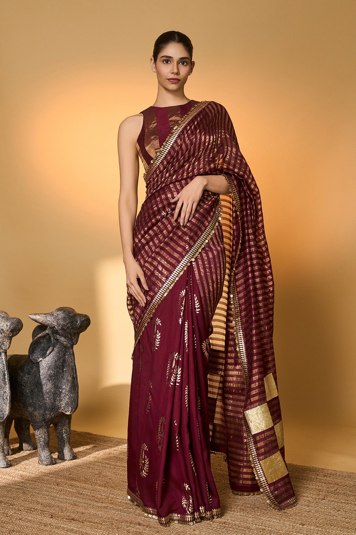 Plum Corncrest Gota Saree