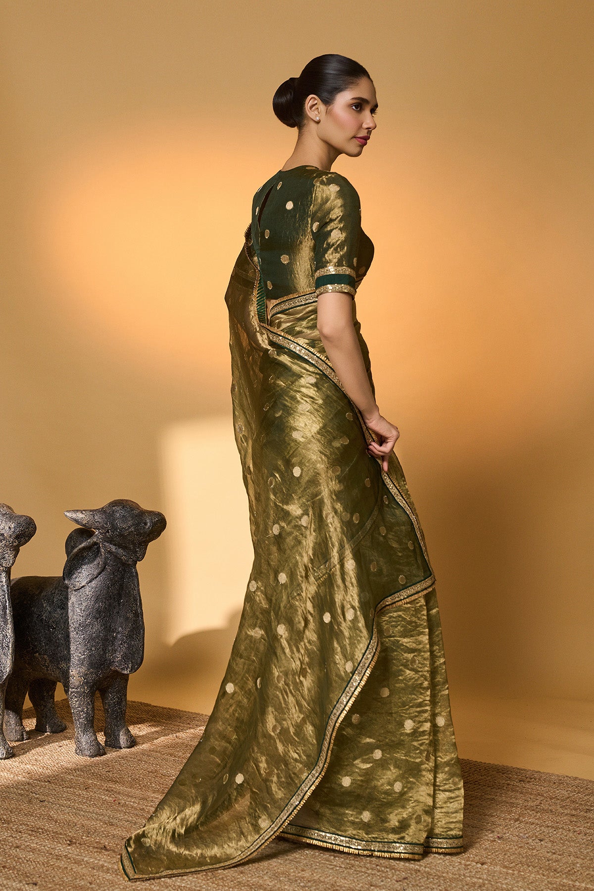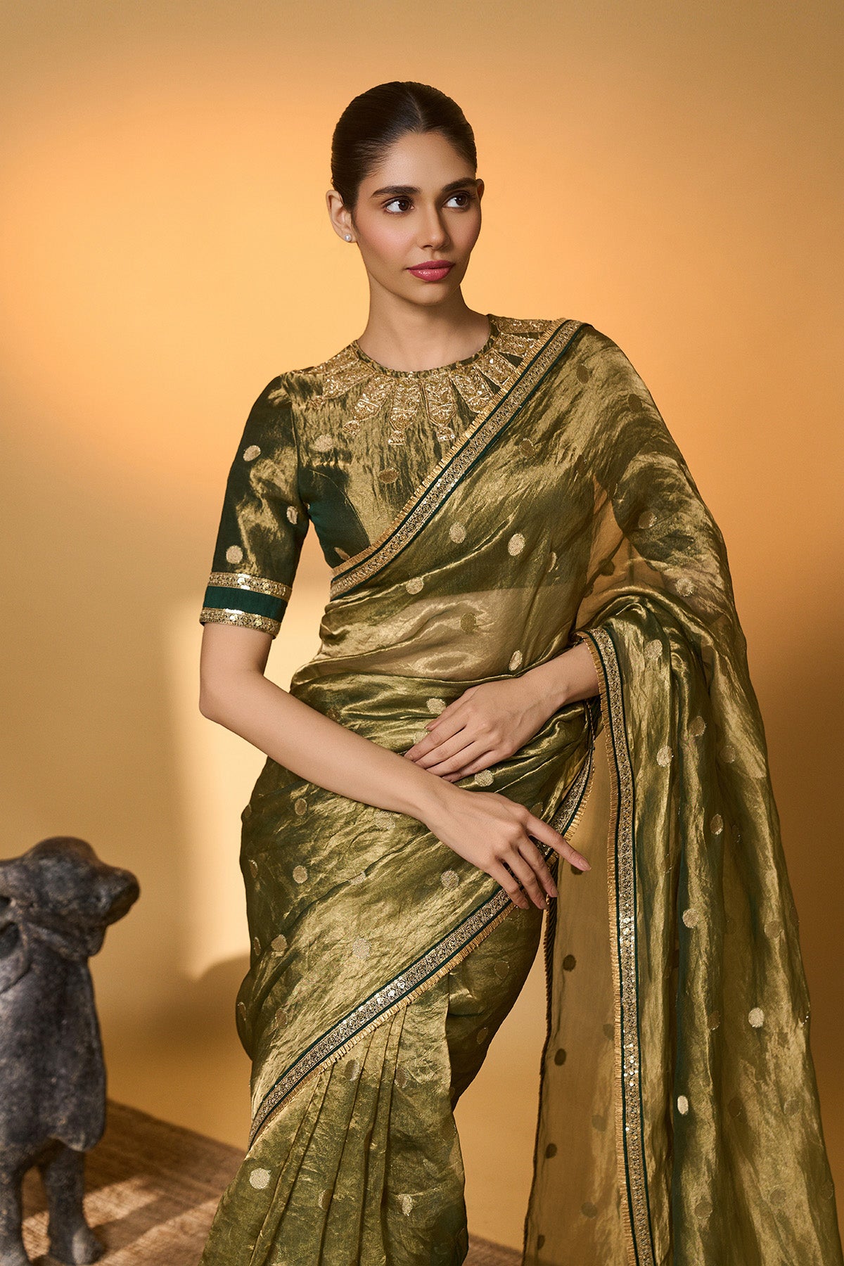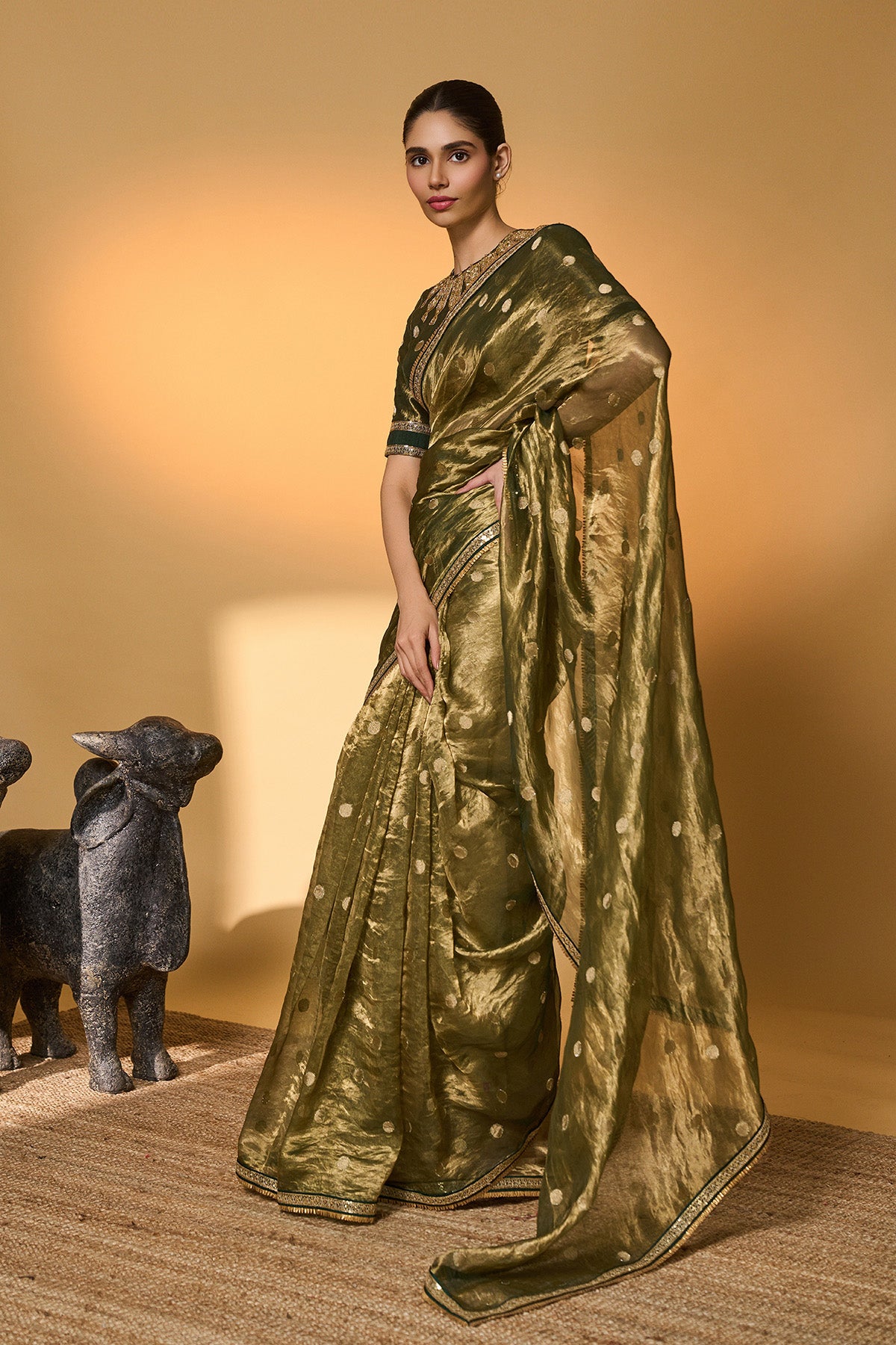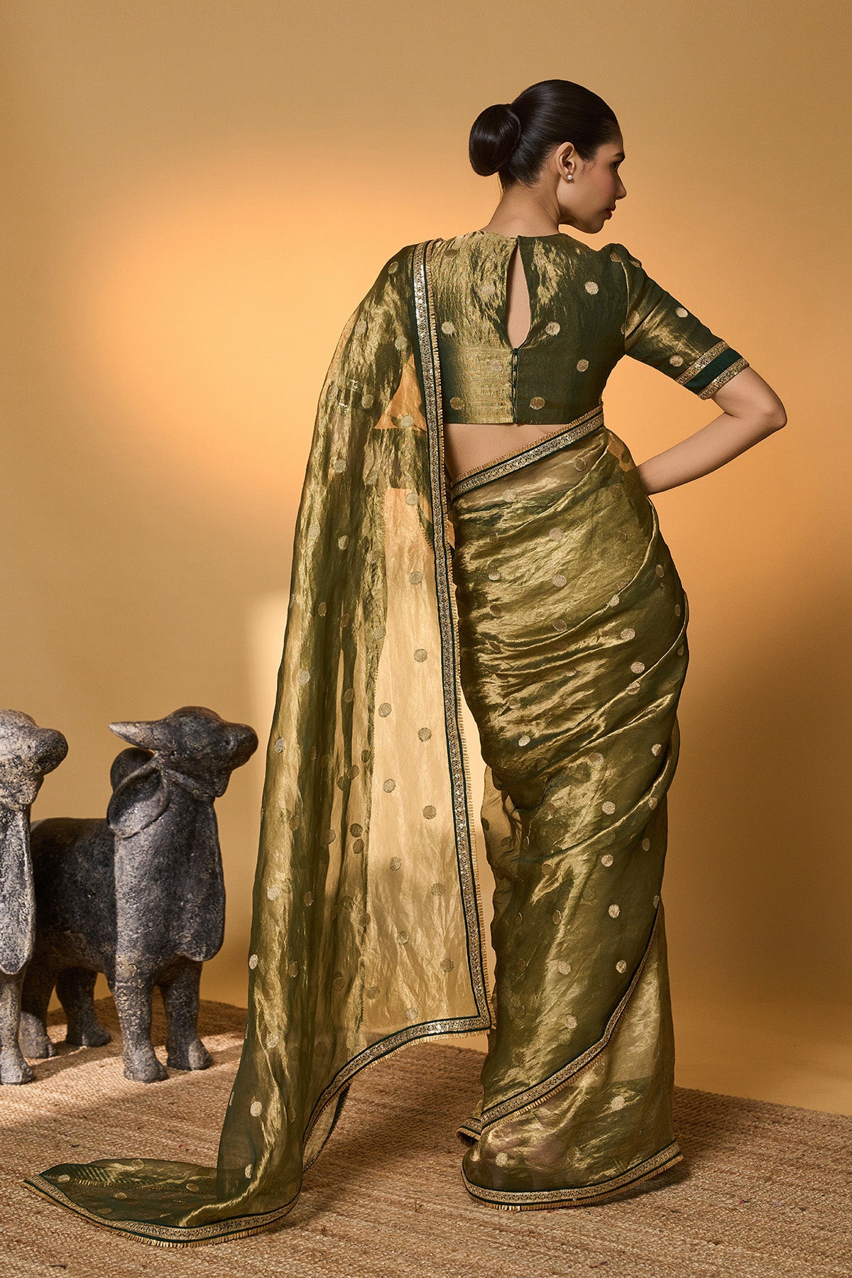 Green Polka Tissue Saree