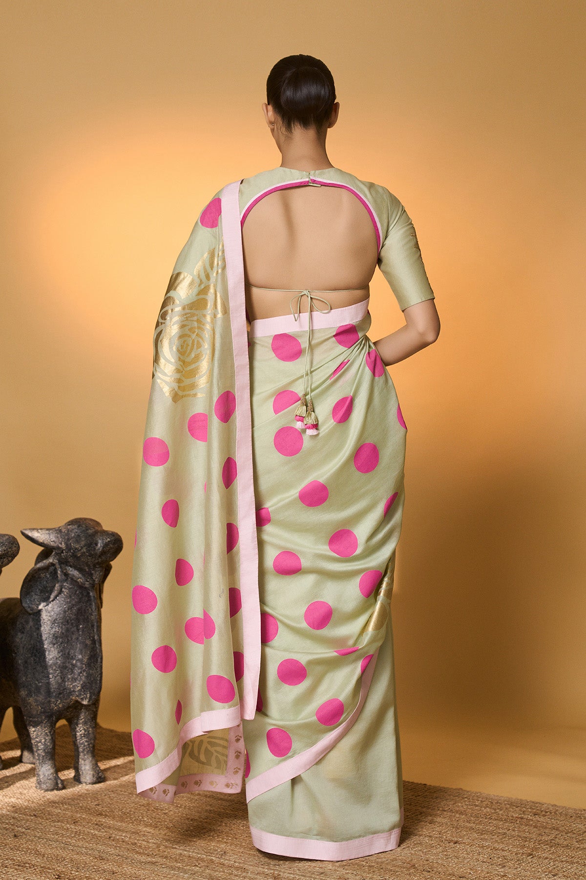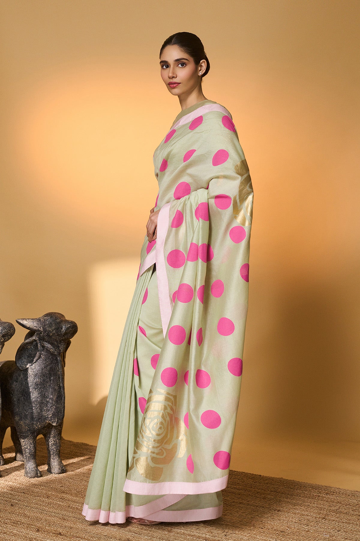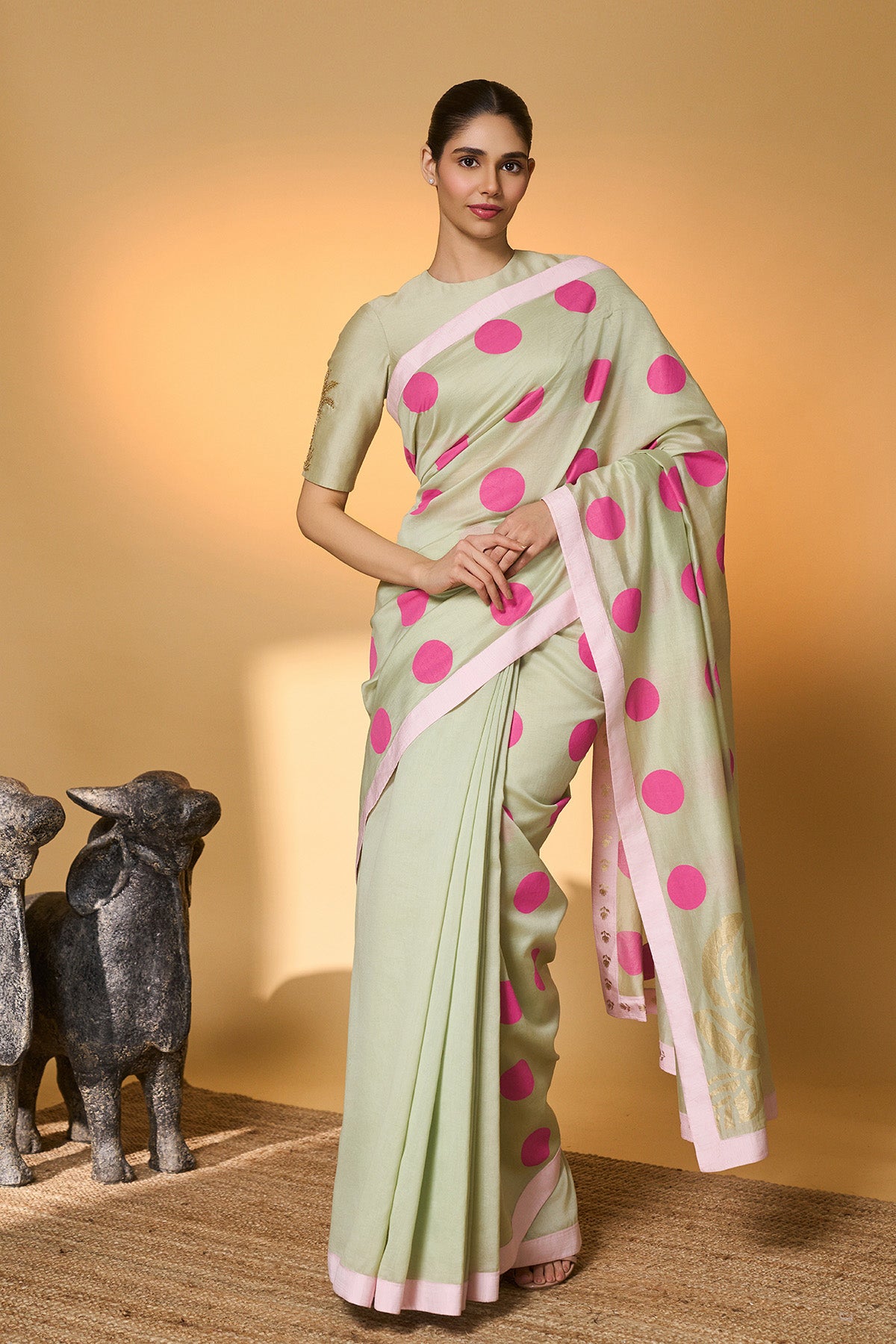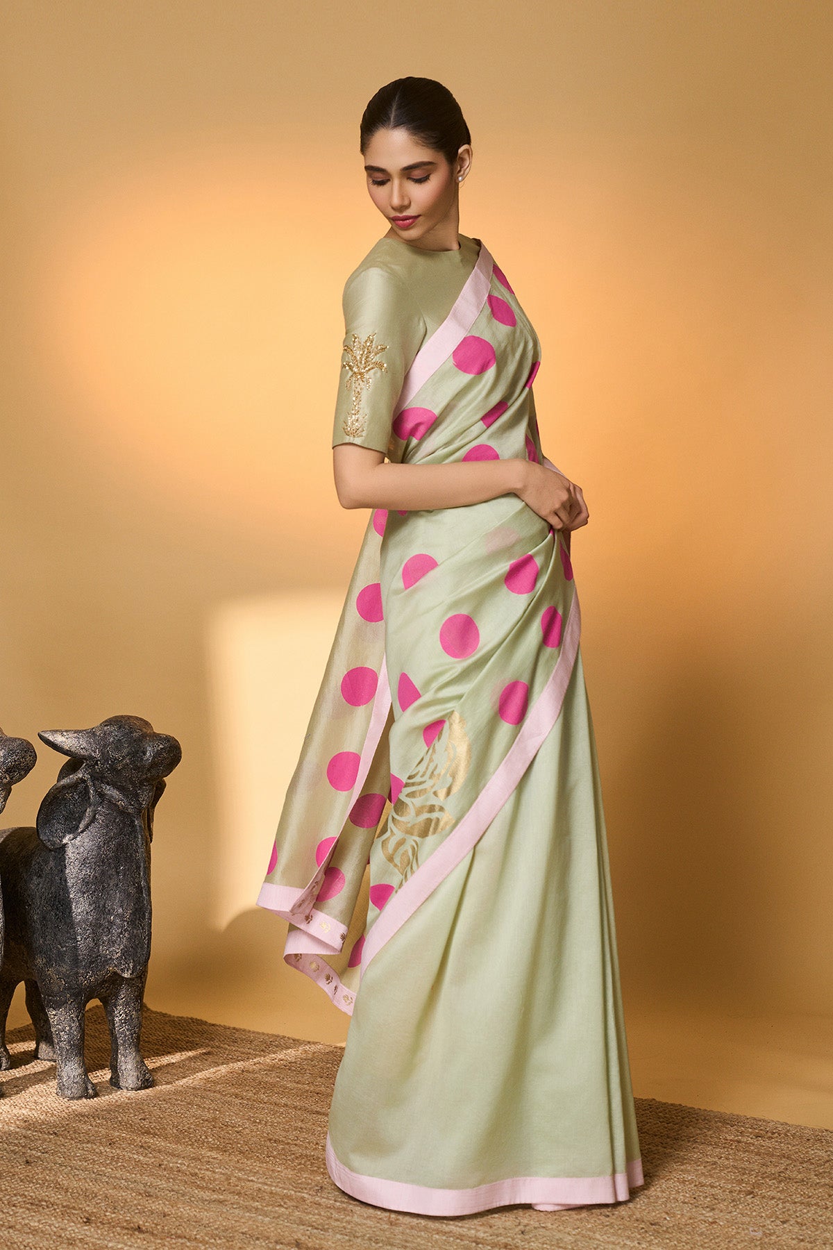 Green Polka Tissue Saree
