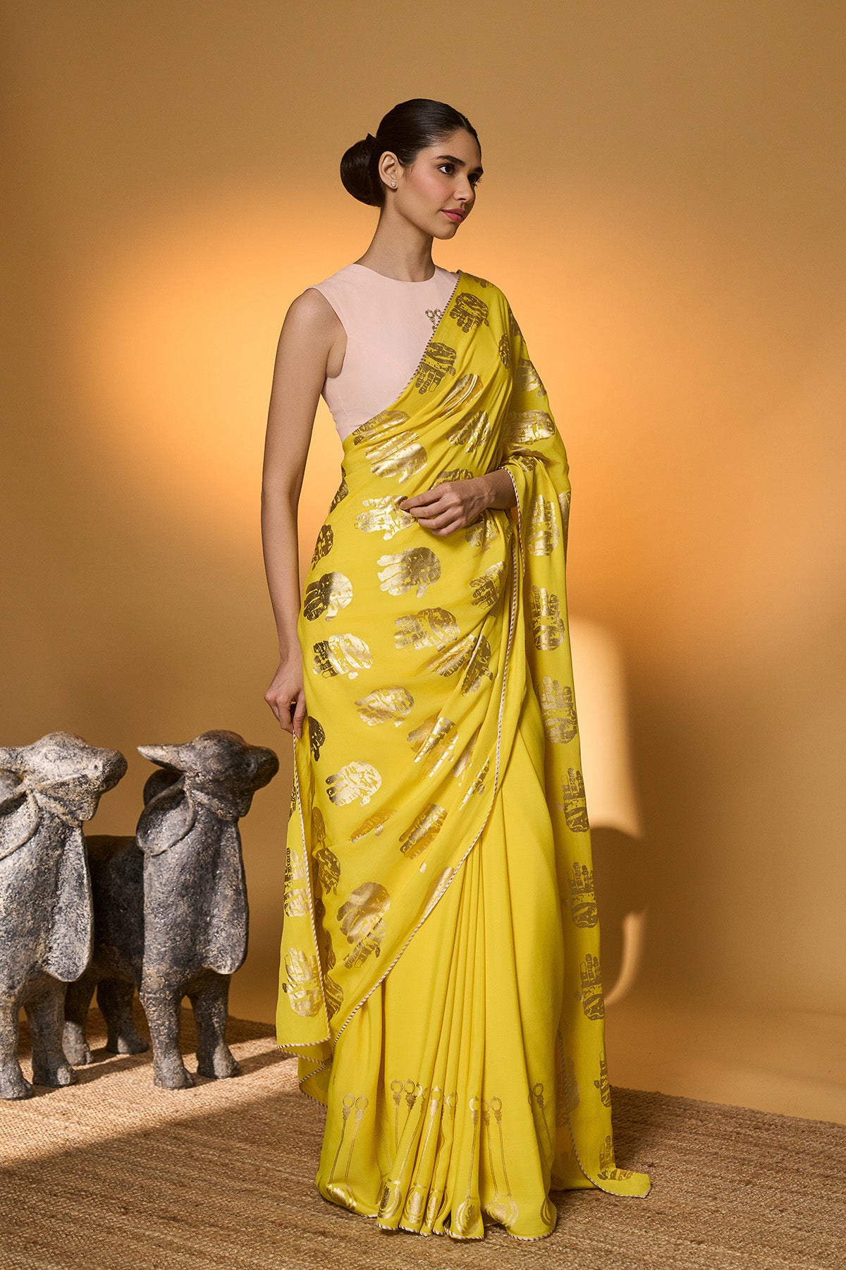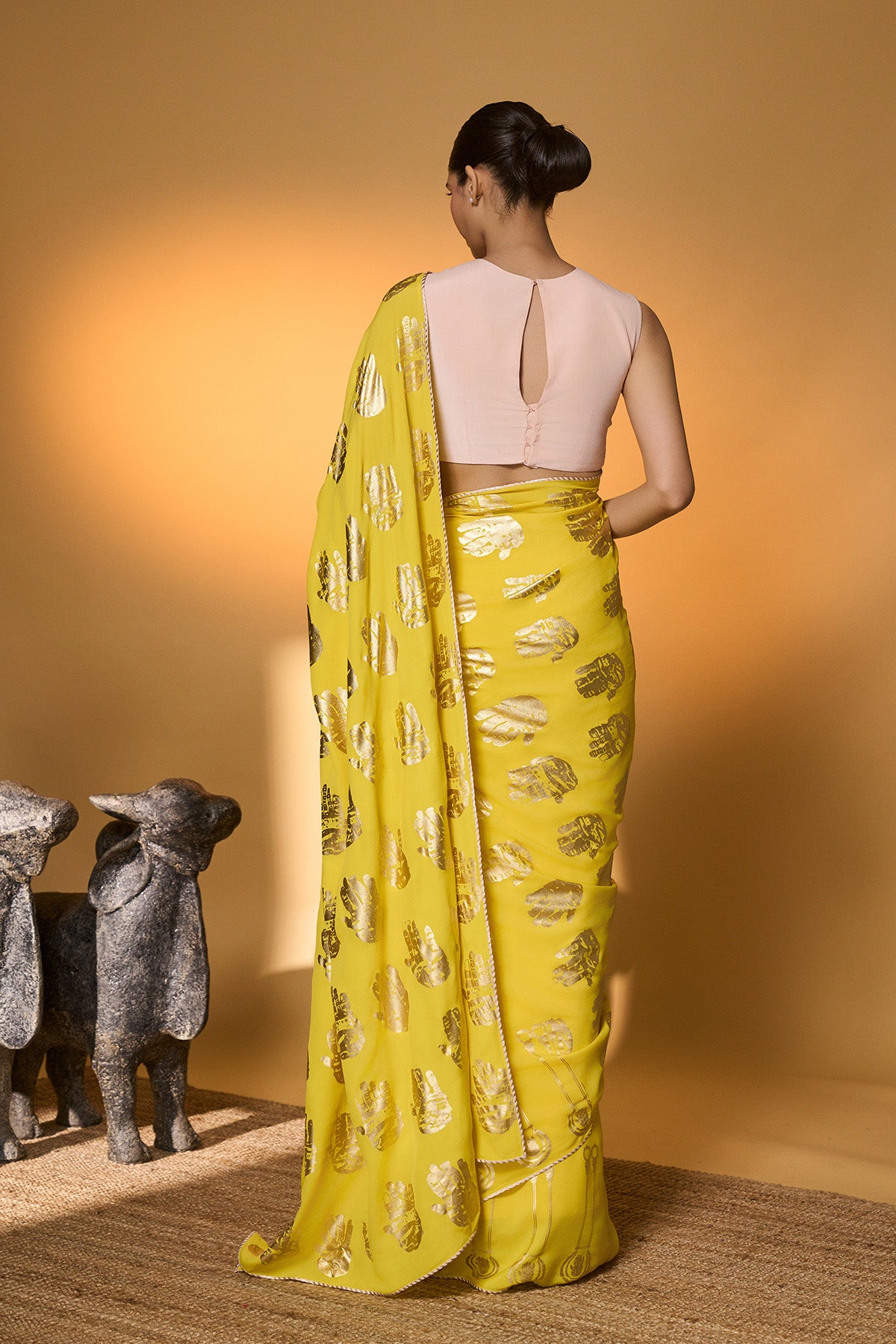 Baby Pink Droopy Bloom Gota Saree