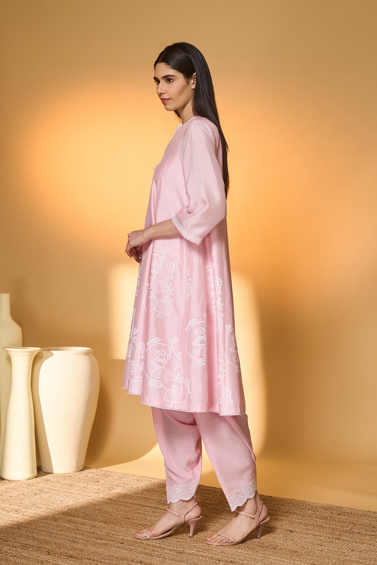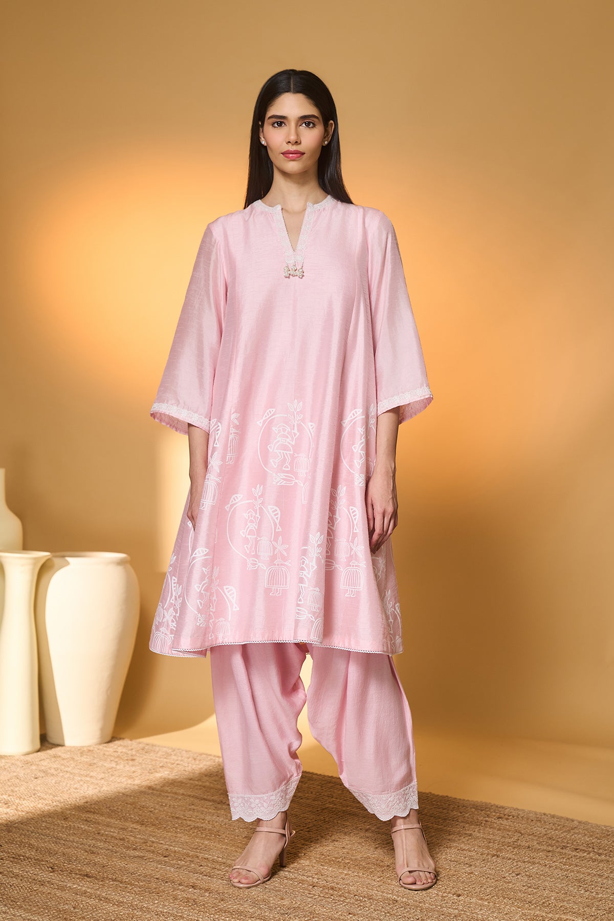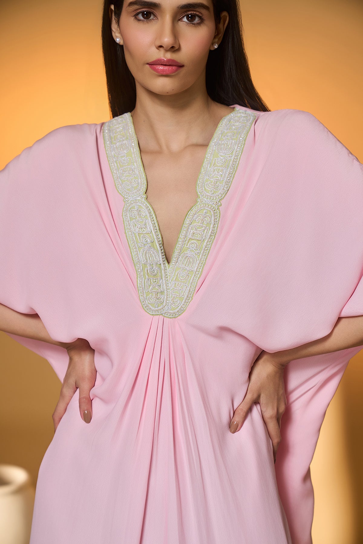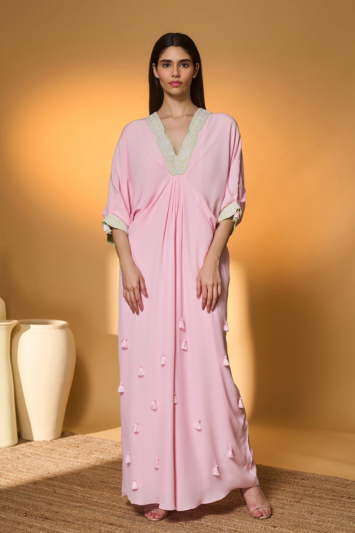 Baby Pink Moonfield Embroidered Kaftan