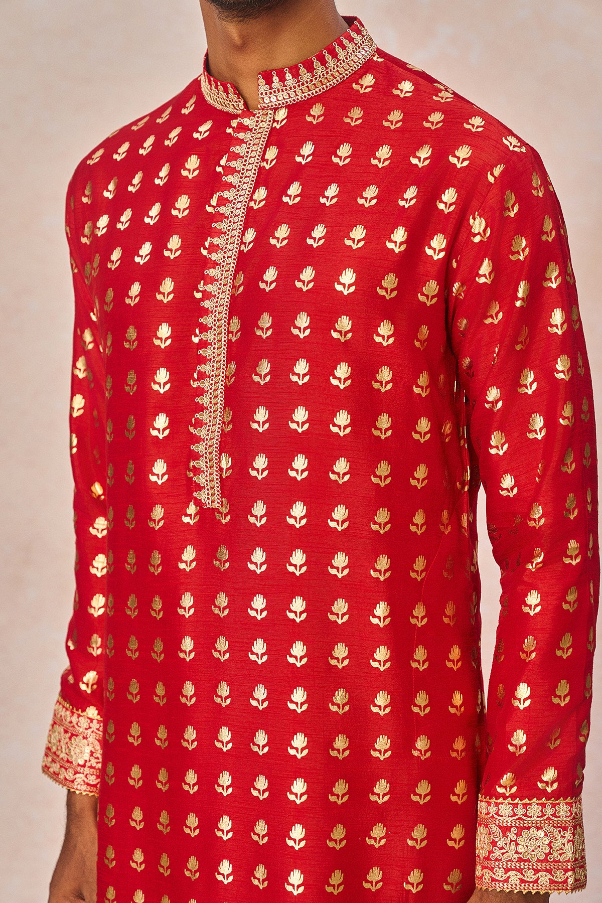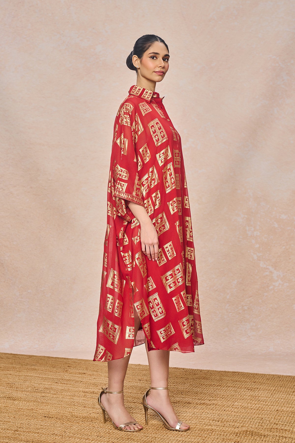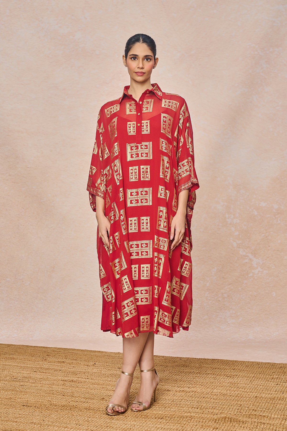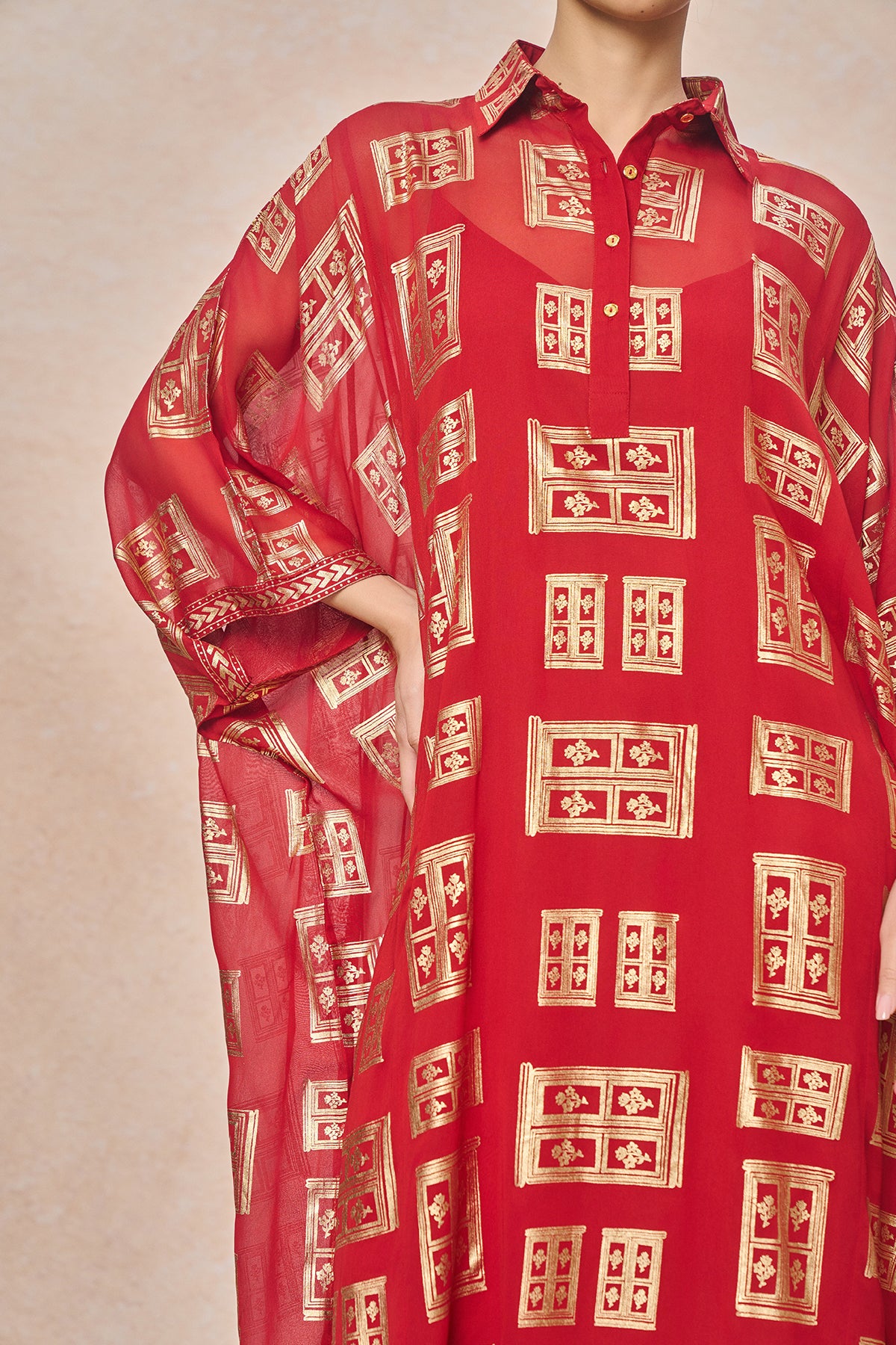 Ready To Ship Red Open Doors Foil Collar Kaftan
