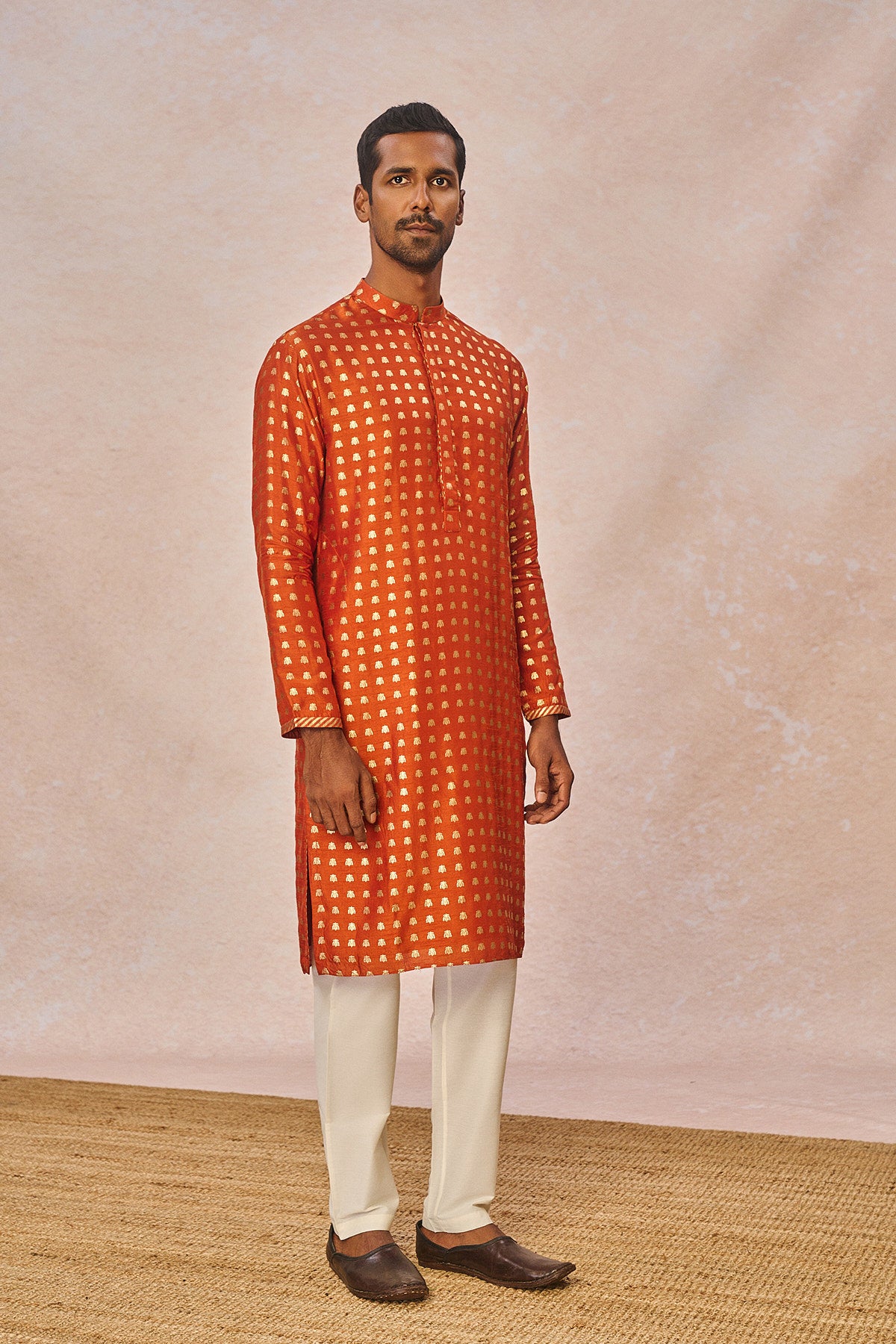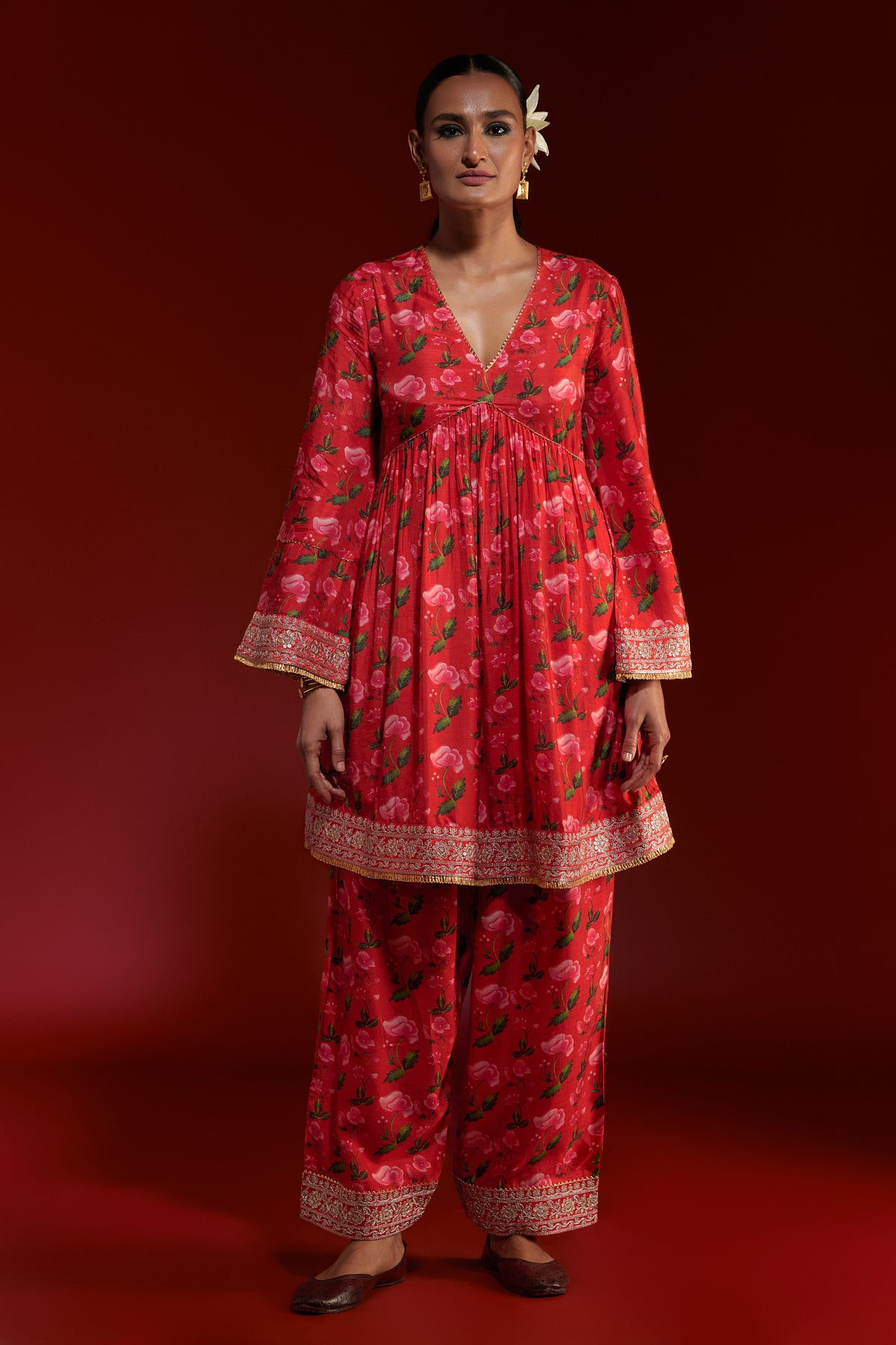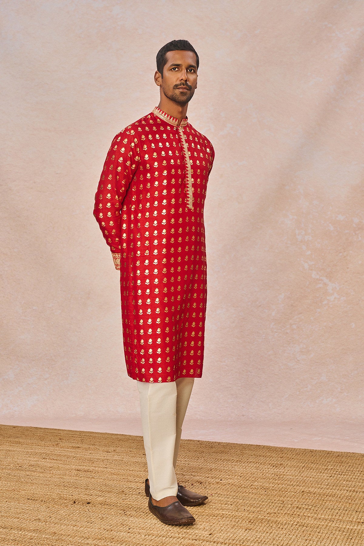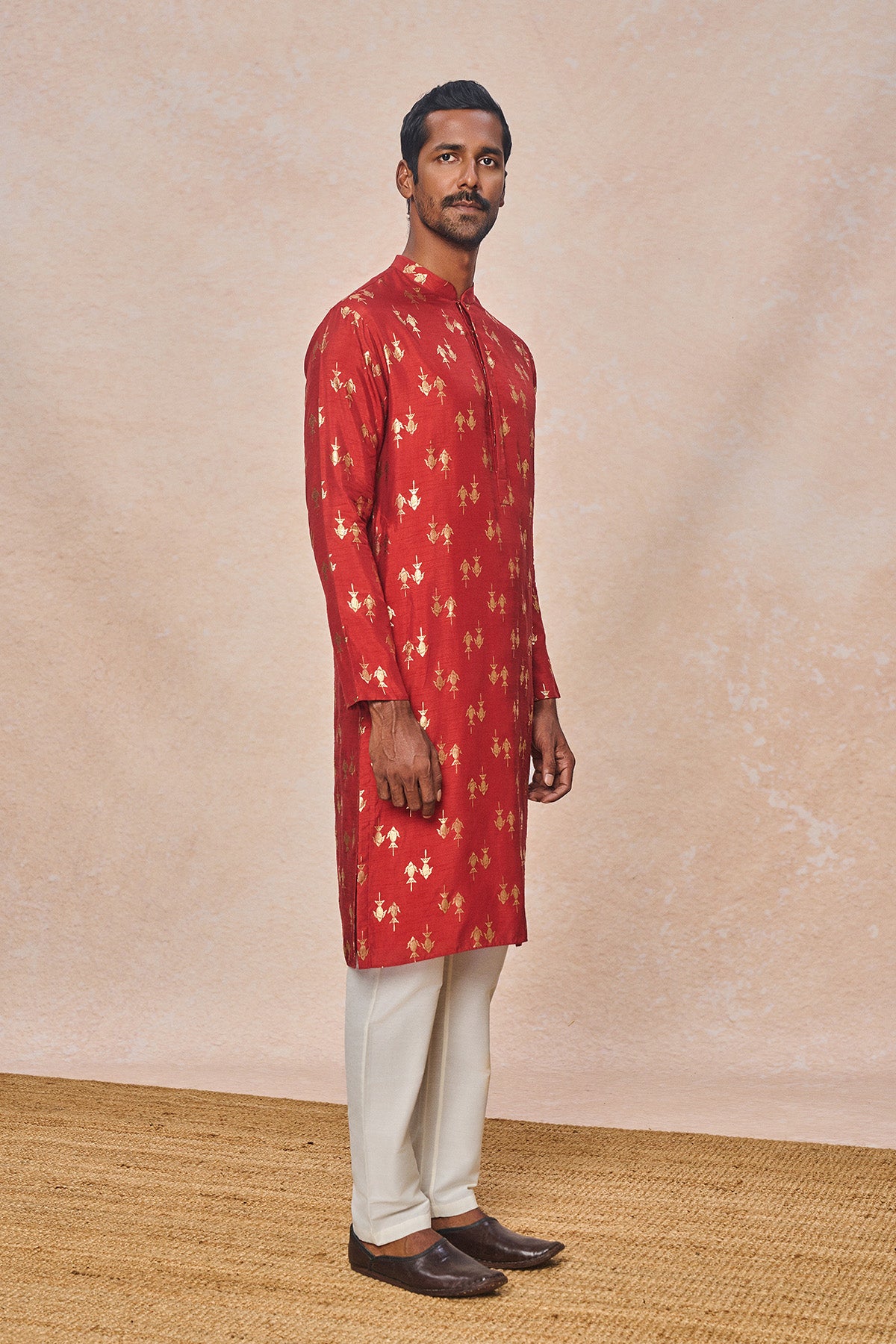 Ready To Ship Red Open Doors Foil Collar Kaftan