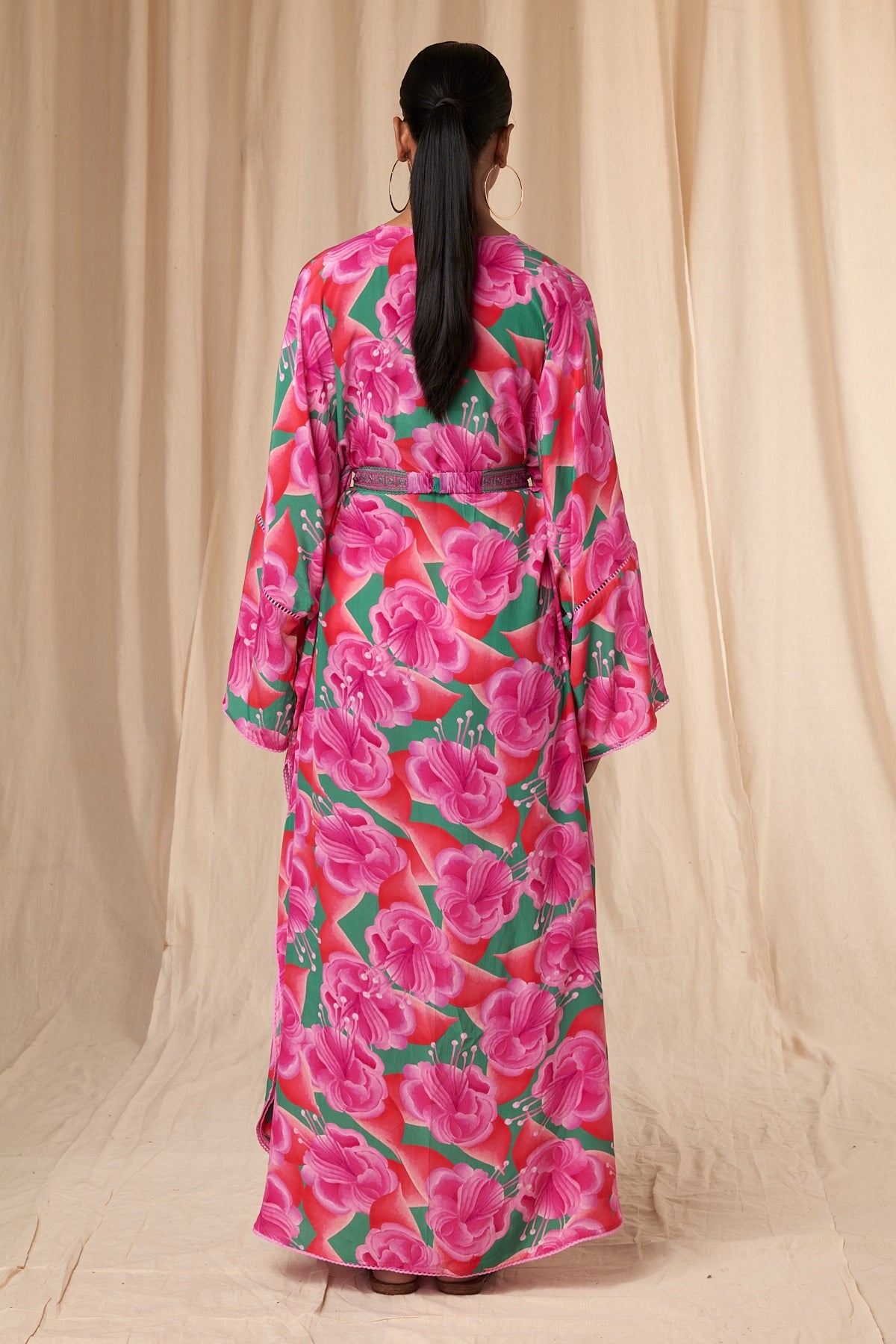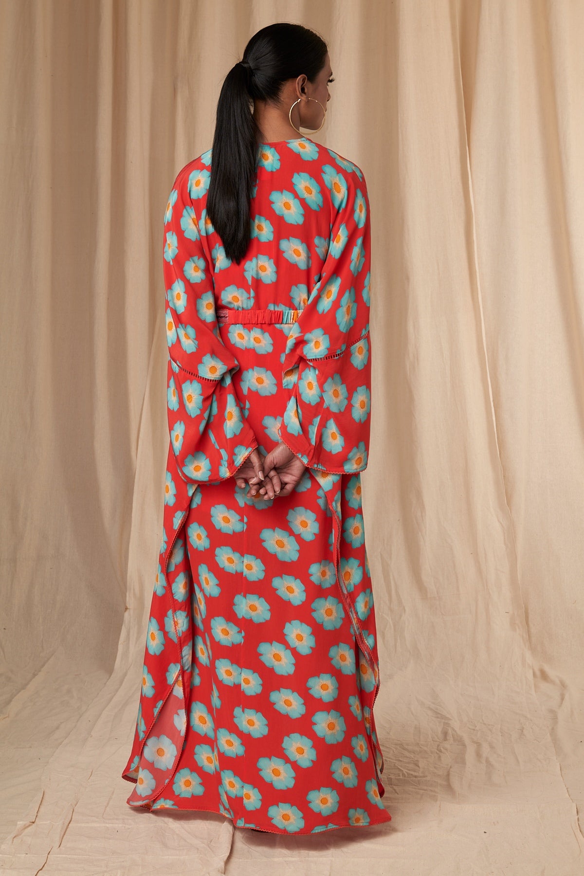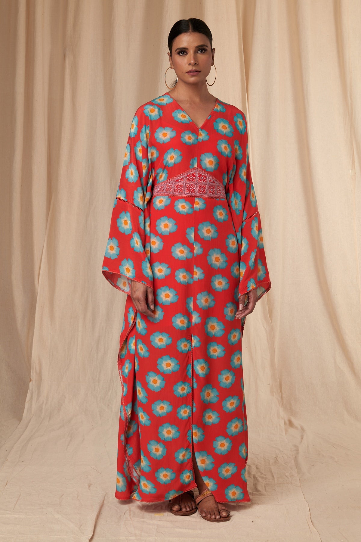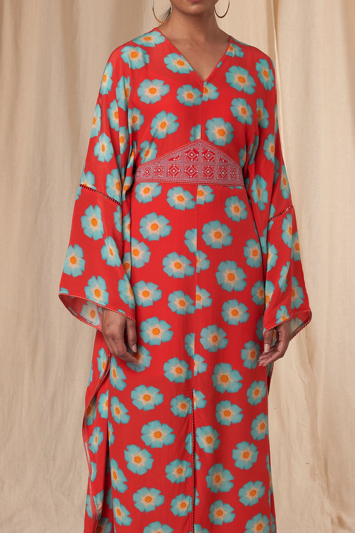 Ready To Ship Red Crazy Daisy Kaftan Dress with Belt