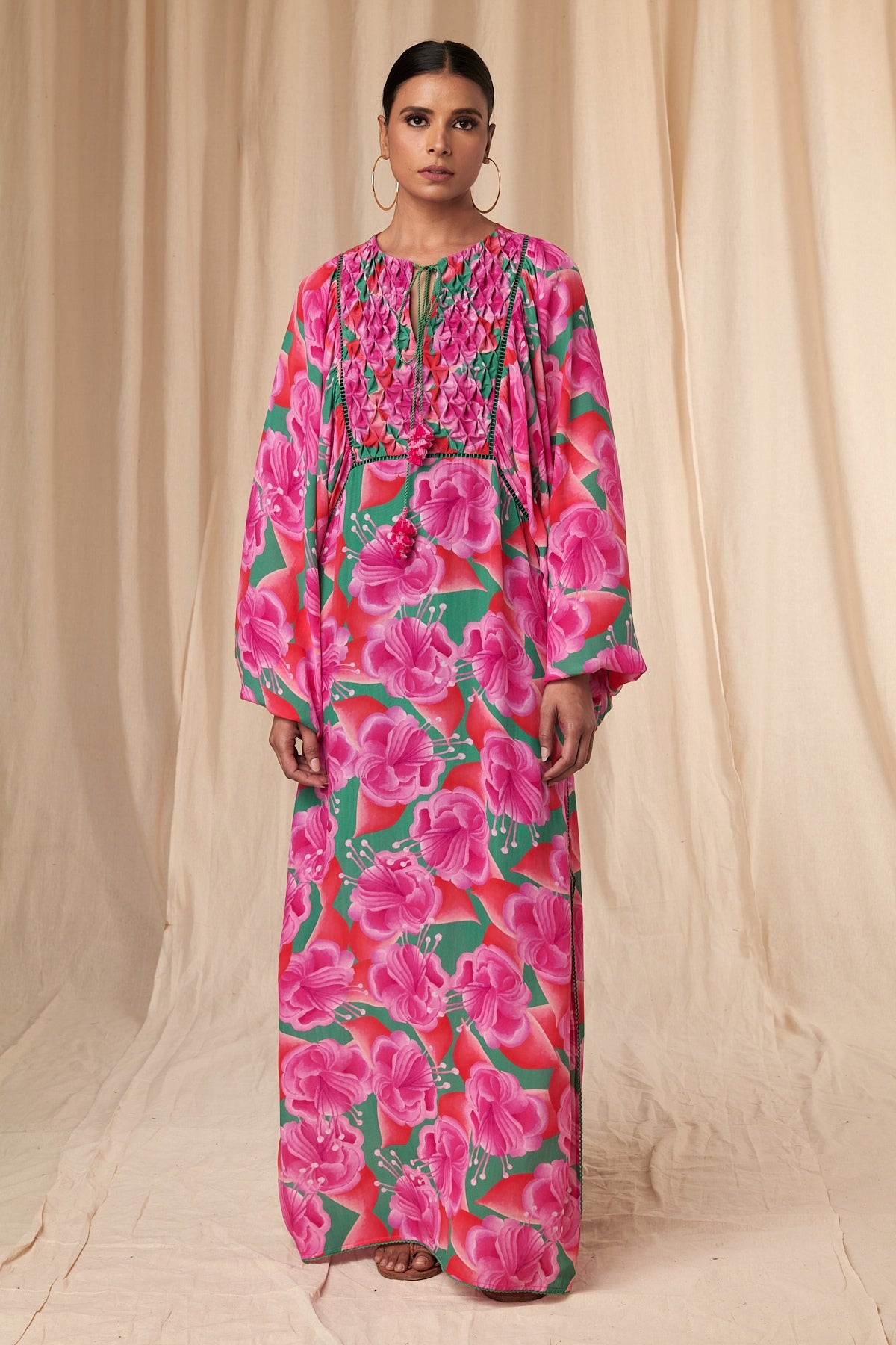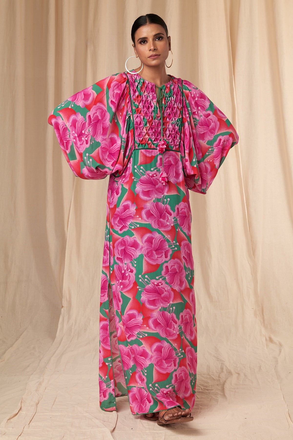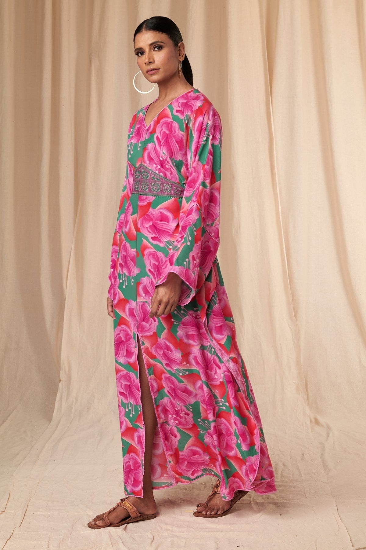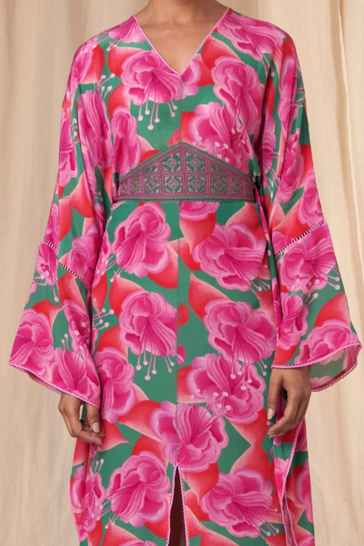 Ready To Ship Red Crazy Daisy Kaftan Dress with Belt