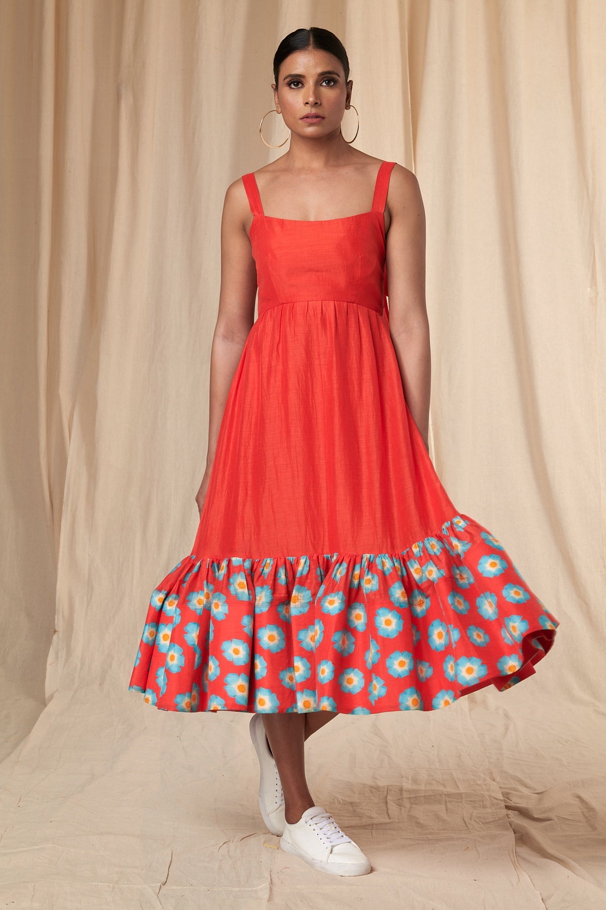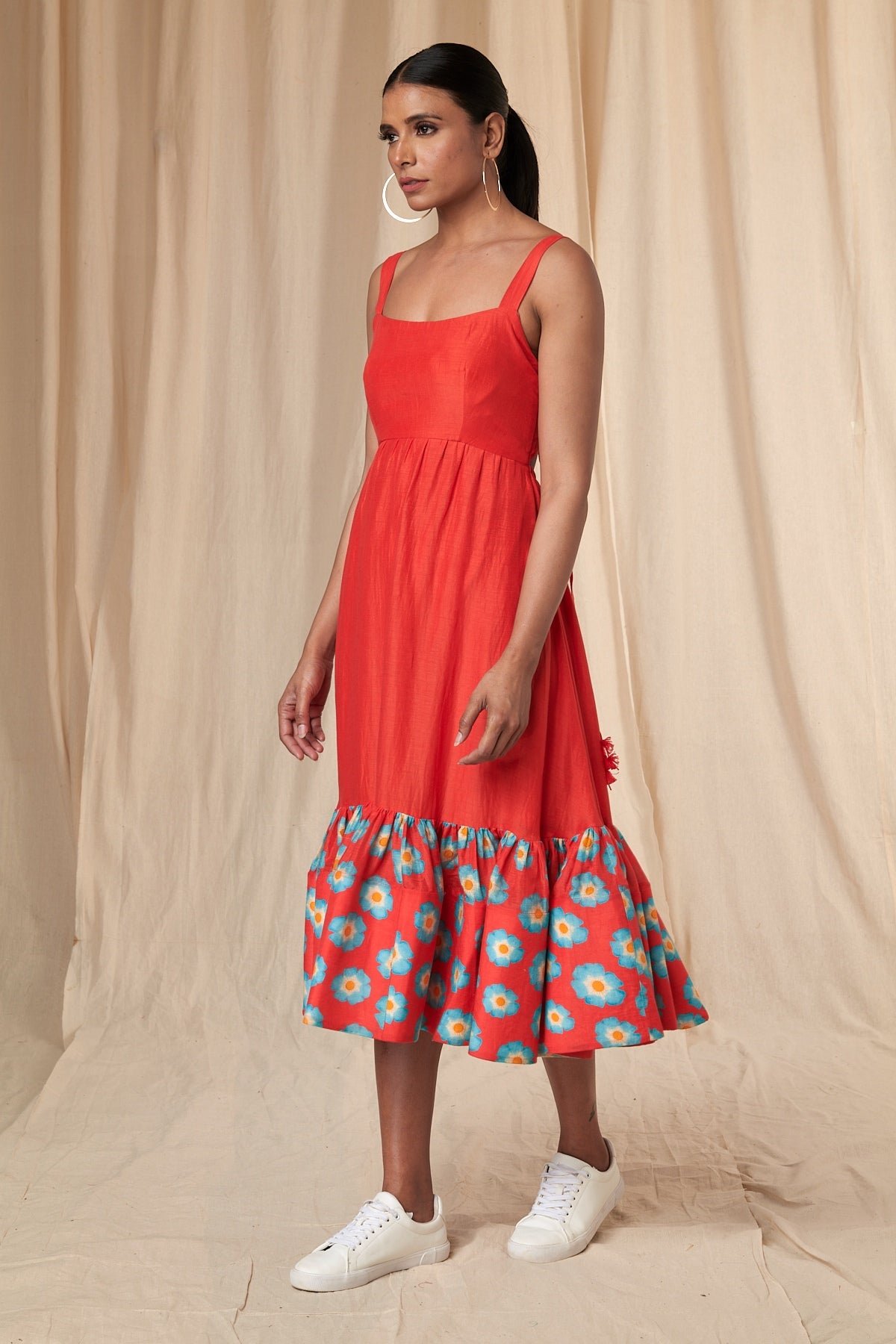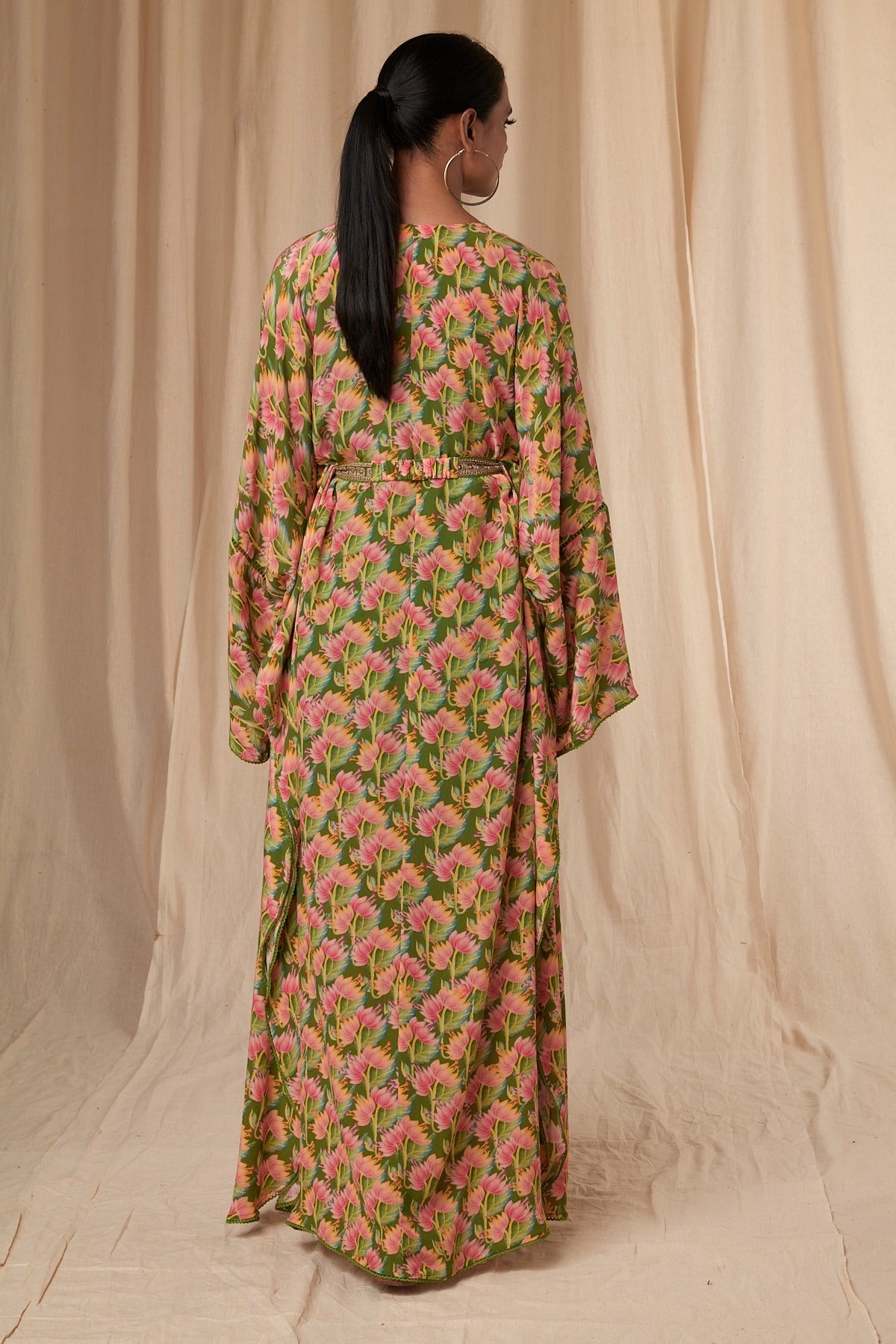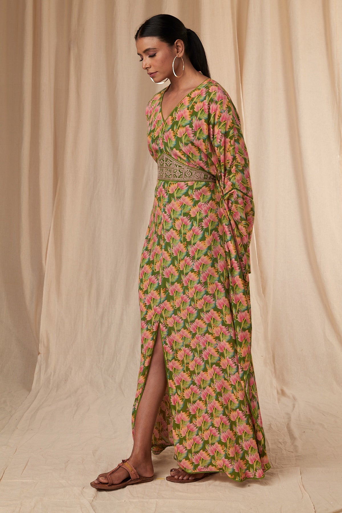 Ready To Ship Red Crazy Daisy Kaftan Dress with Belt
