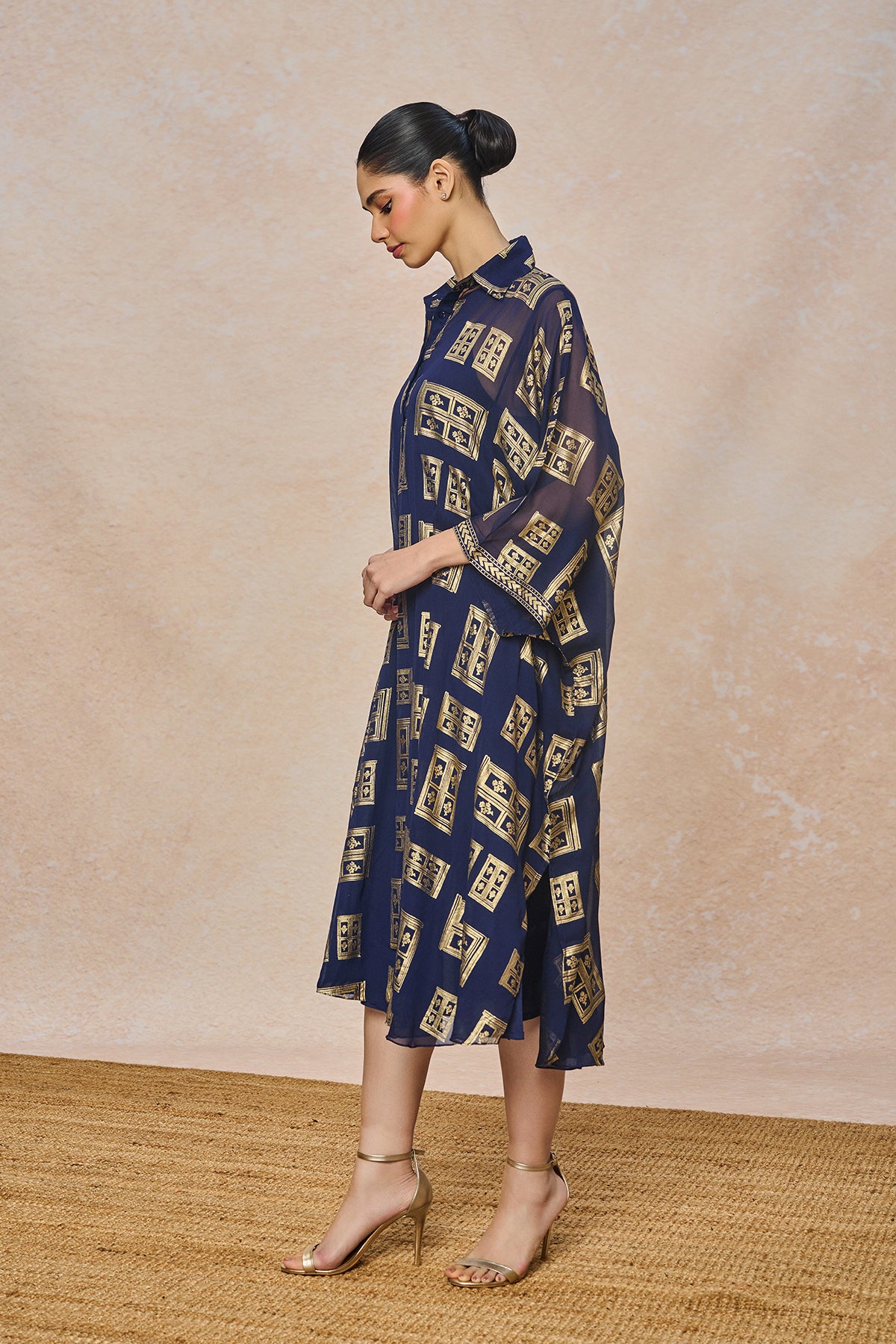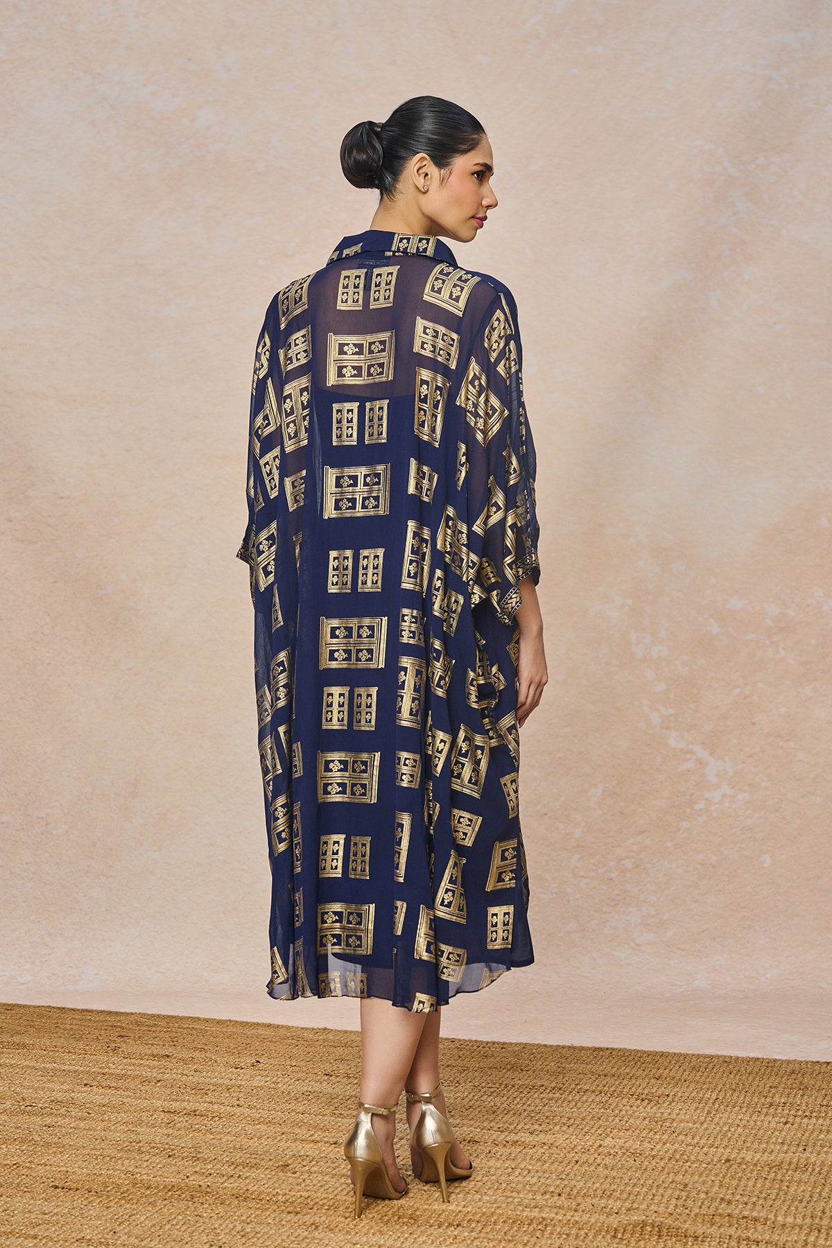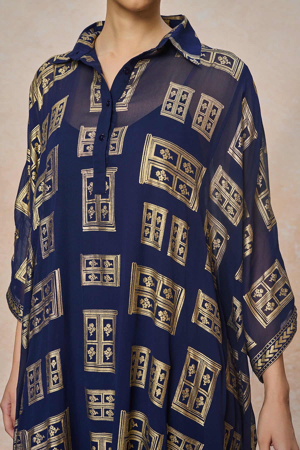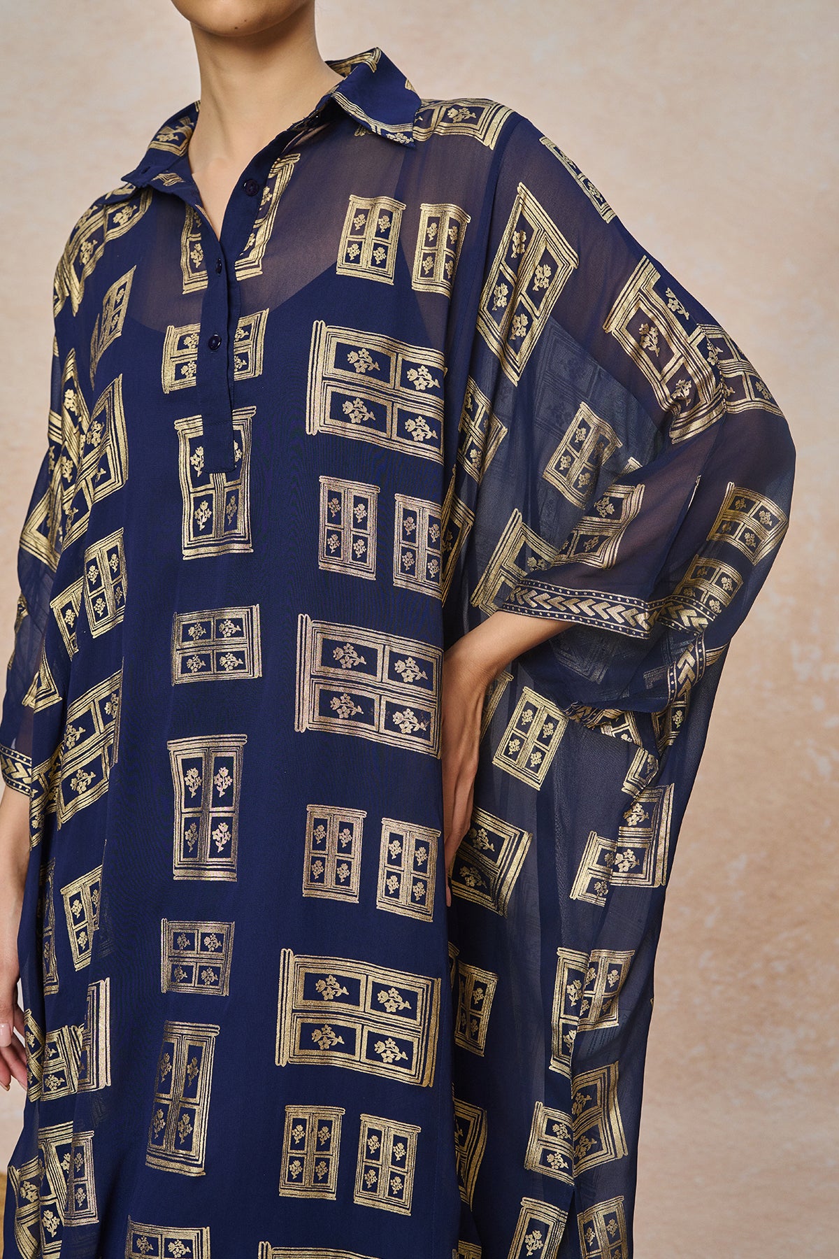 Ready To Ship Blue Open Doors Foil Collar Kaftan