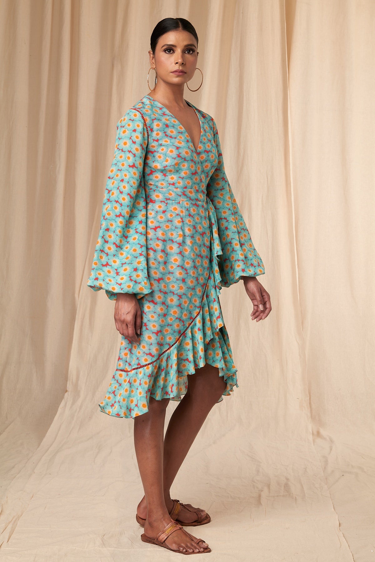 Ready To Ship Red Sunshine Daisies Wrap Dress