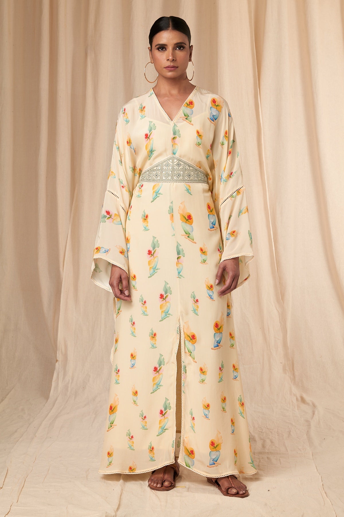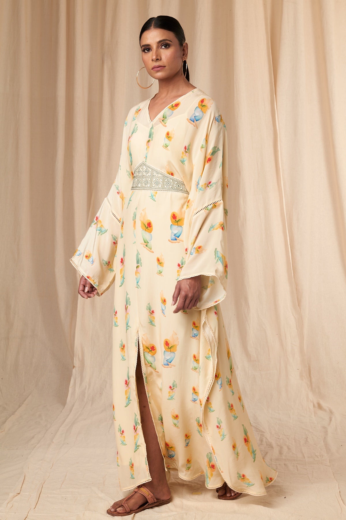 Ready To Ship Half And Half Open Door Foil Kaftan