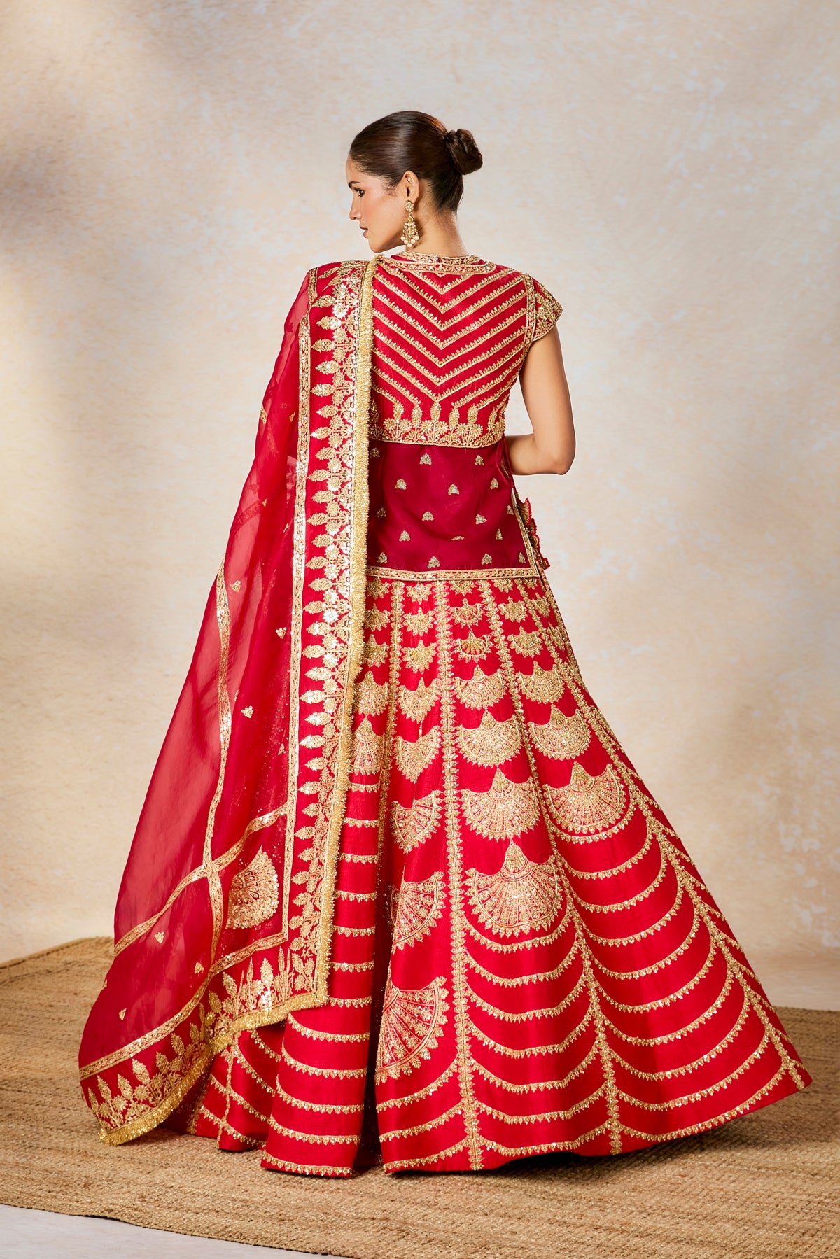 Fabric: Lehenga- Heavy Raw Silk | Kurta + Koti- Dupion & Heavy Raw Silk | Dupatta 1- Silk Organza | Dupatta 2- Silk Organza | Saree- Dupion