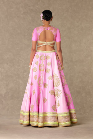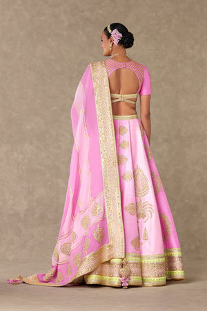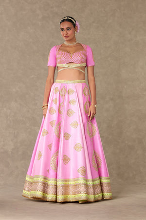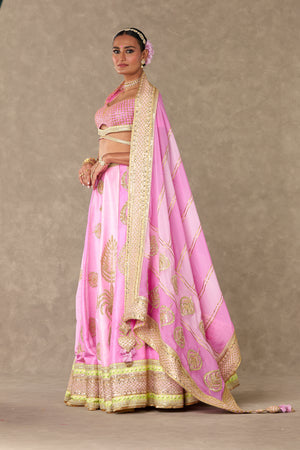 Styling: Pair the Rani Pink Lehenga with contrasting emerald's and pearl's along with comfortable heels. Style it with our beautiful organza dupatta draped elegantly over one shoulder for a timeless and classic look SKU: MSB23015