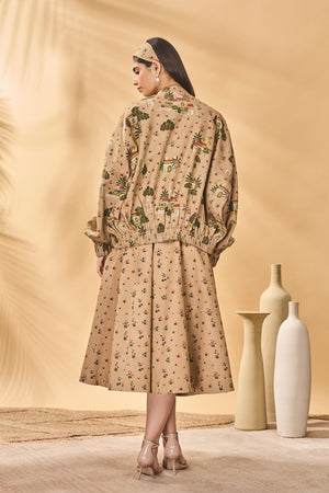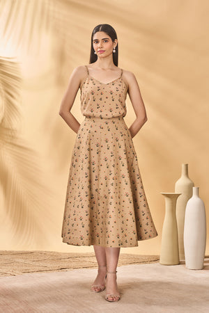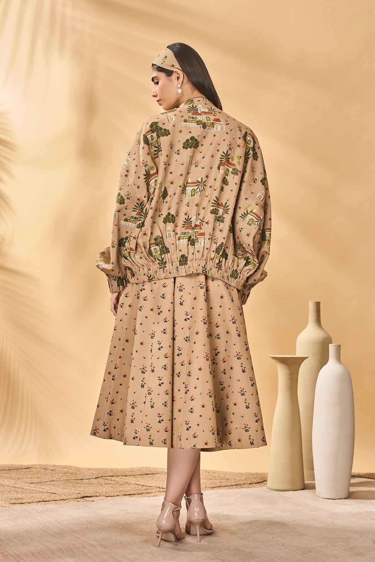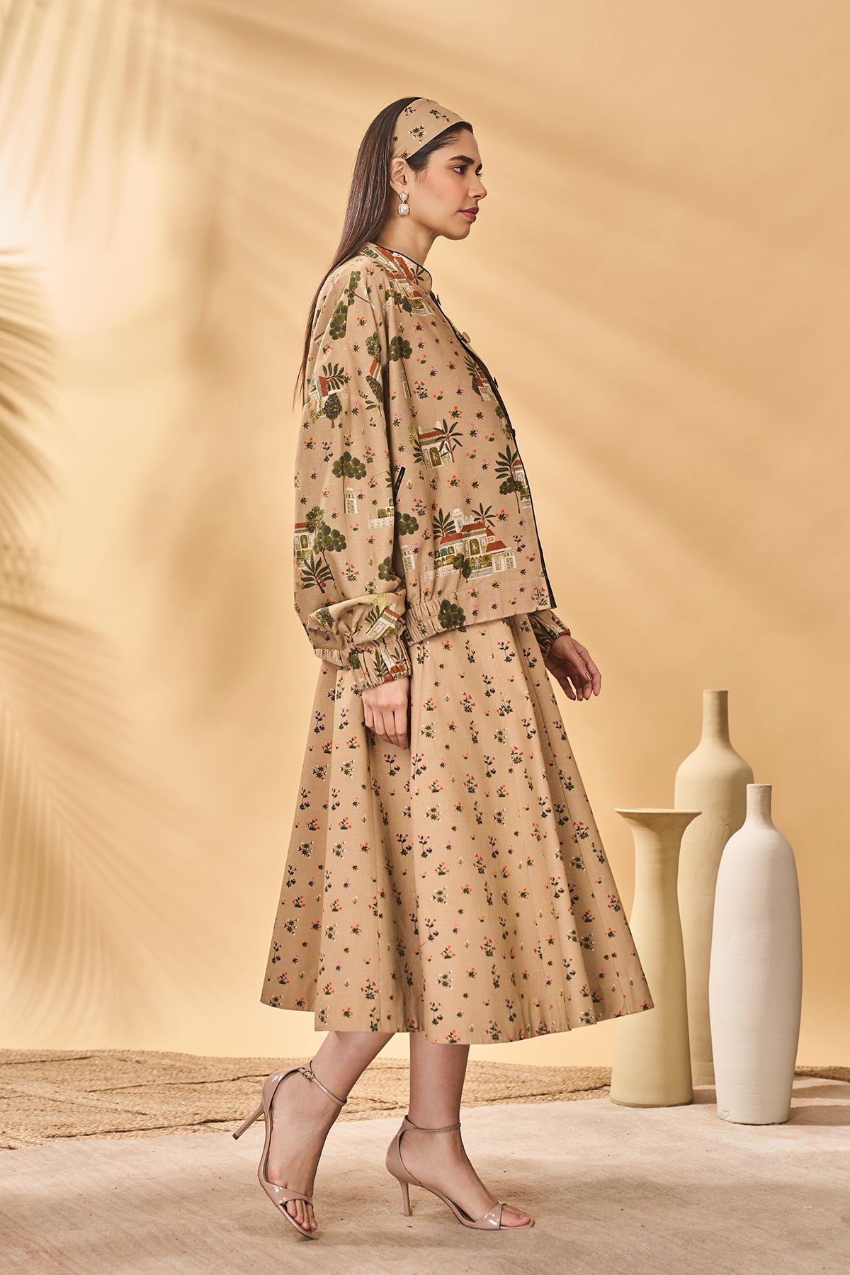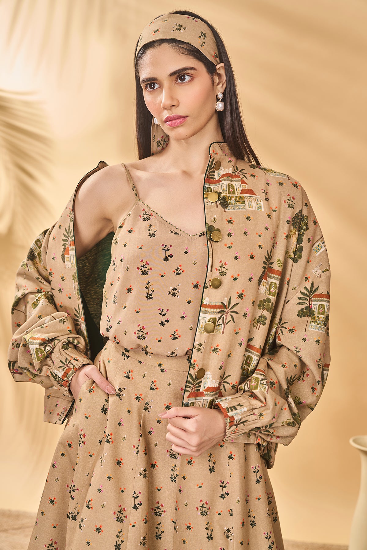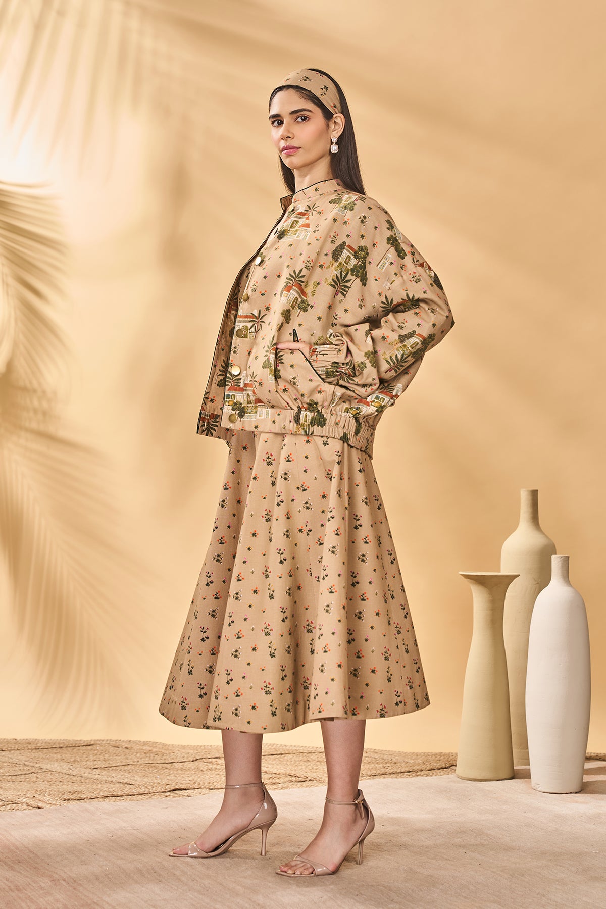 Fabric: Bomber Jacket- Cotton Linen | Slip top- Crepe Silk | Skirt- Cotton Linen