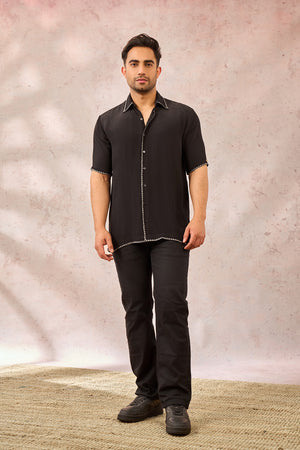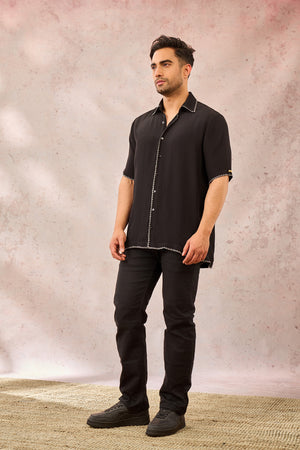 Details: Shirt- Shirt with digital print patch at the back | Standcollar | Front placket | Gold Toffee button attached to the side seam