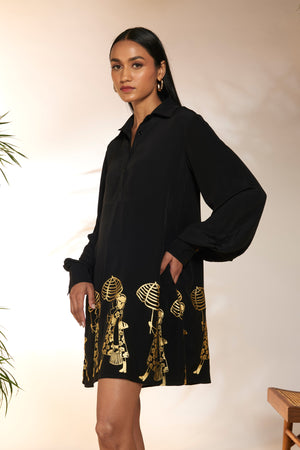 Details: Black Sunny Days Collar Dress - Shirt collar with placket | Balloon sleeve with cuffs Foil placement along the hemline | Side seam pockets