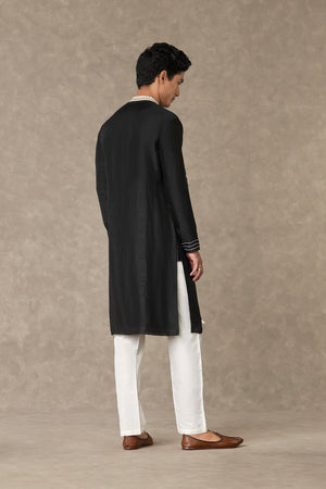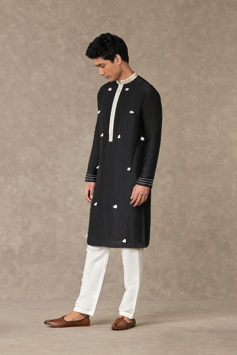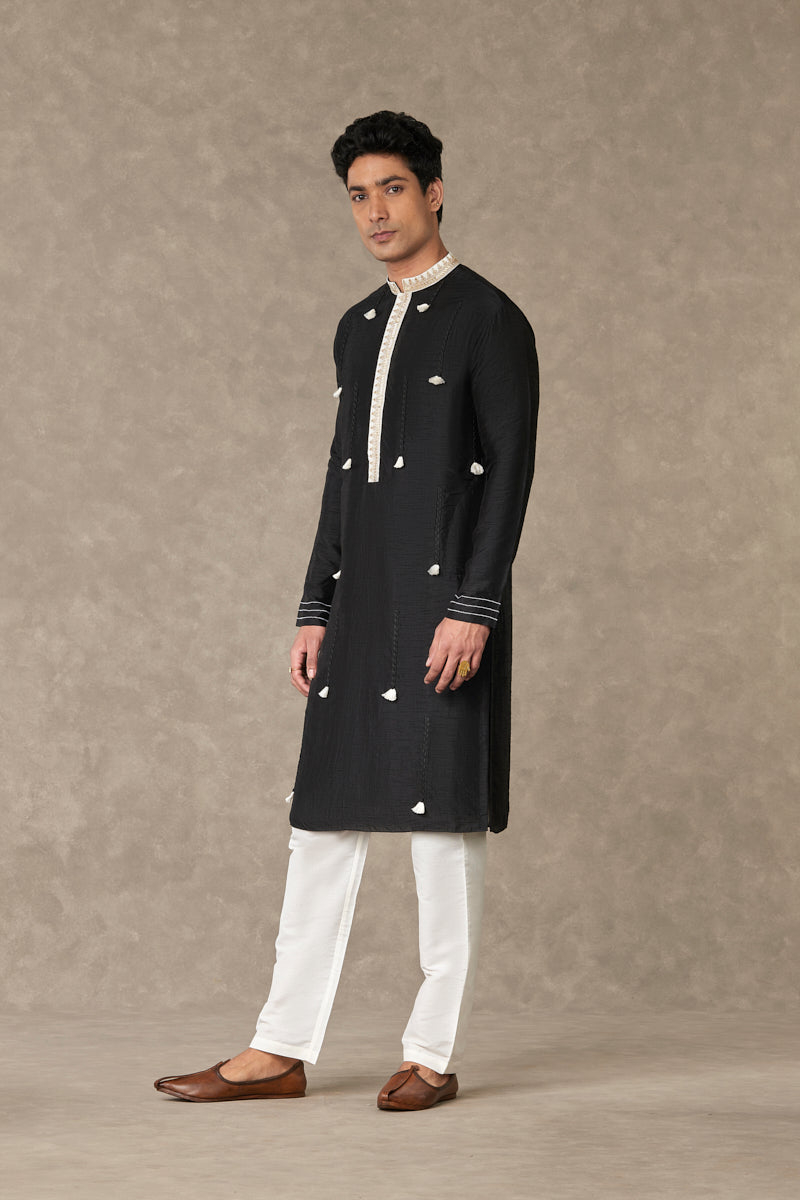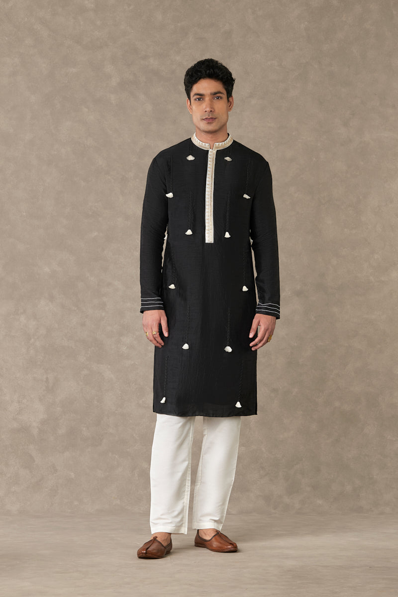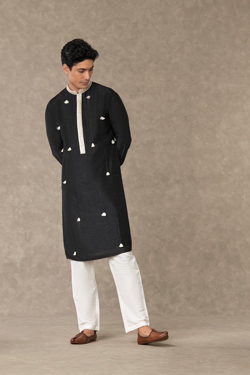 Styling: Pair this vibrant Black Tassel Kurta Set with a pair of mojris.