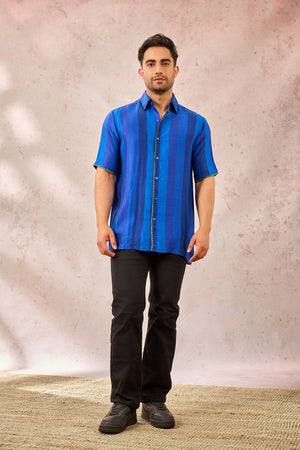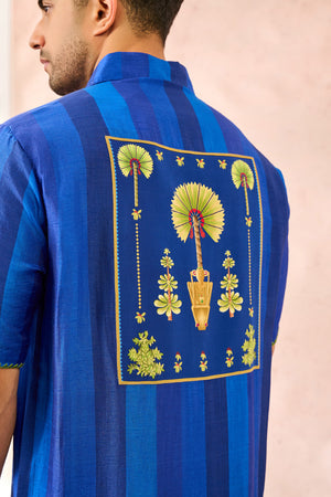 Details: Shirt- All over digital printed shirt | Printed patch attached at the back | Stand collar | Front placket | Gold Toffee button attached to the side seam