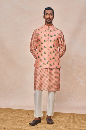 Details: Pink Tulip Bandi Set - Digital placement printed Bandi | Mandarin collar | Concealed placket | Center front opening