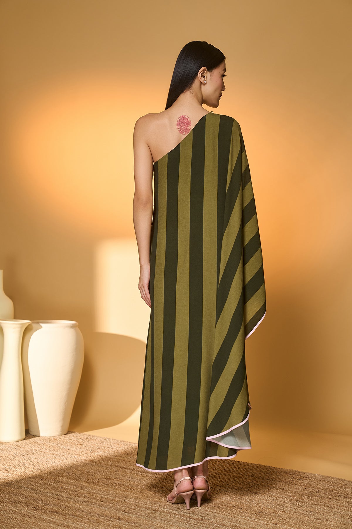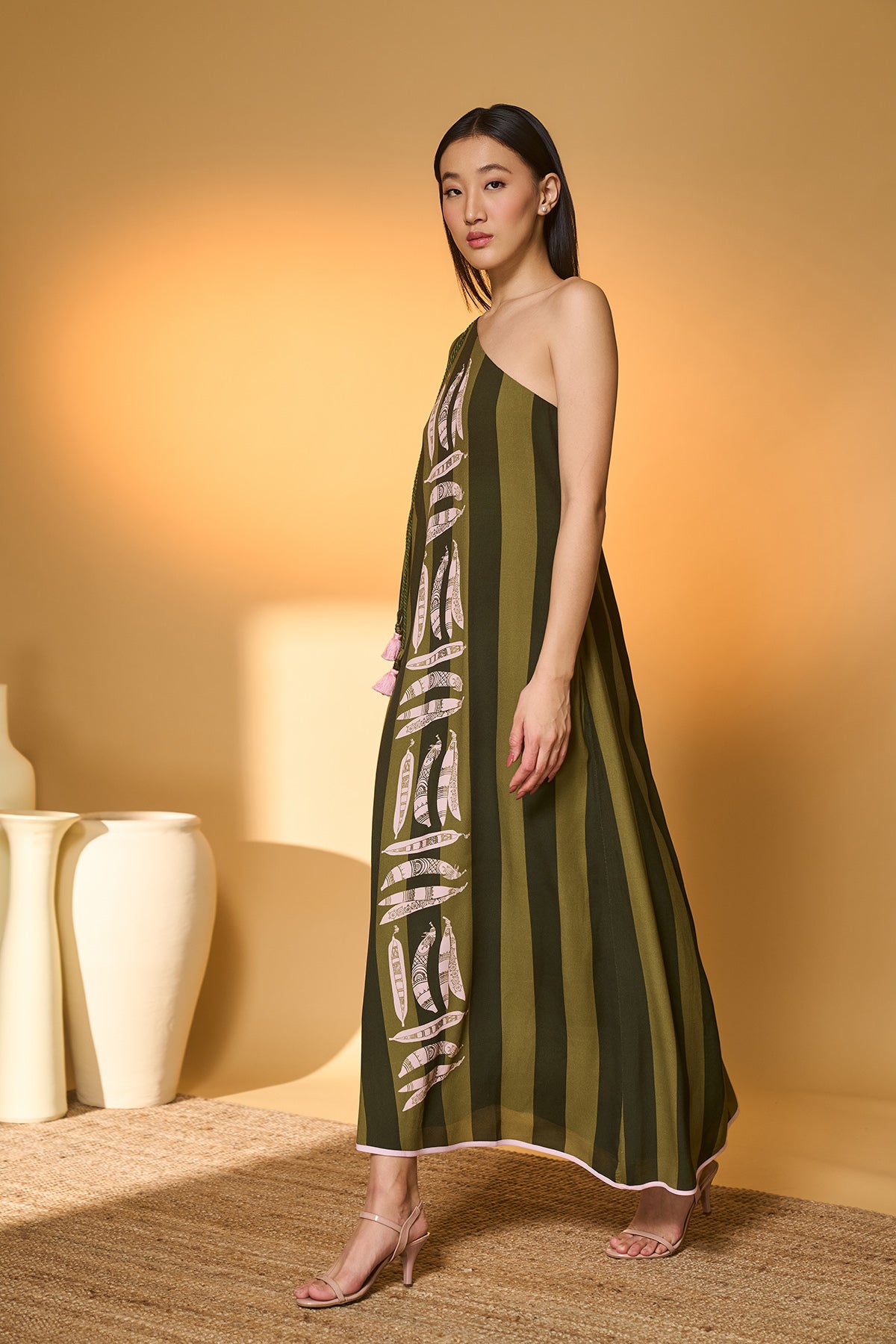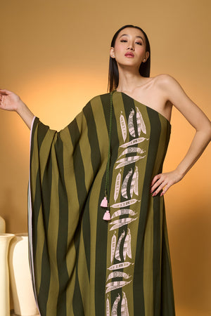 Green Totem Pod One Shoulder Kaftan
