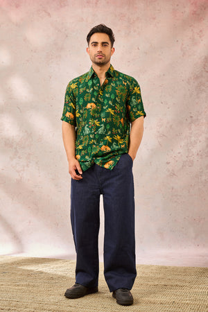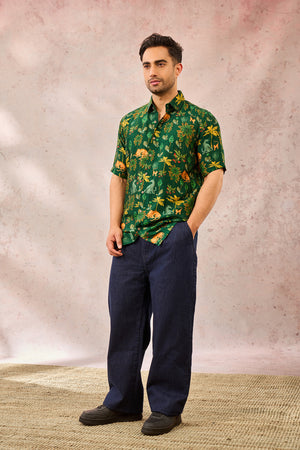 Details: Shirt- All over digital printed shirt | Standcollar | Front placket