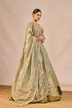 Fabric: Lehenga - Tissue | Blouse - Tissue | Dupatta 1 - Organza | Dupatta 2 - Tissue
