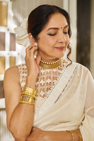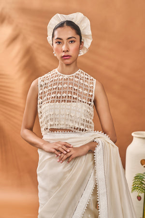Color: Saree- Ivory | Blouse- Ivory | Bustier- Ivory