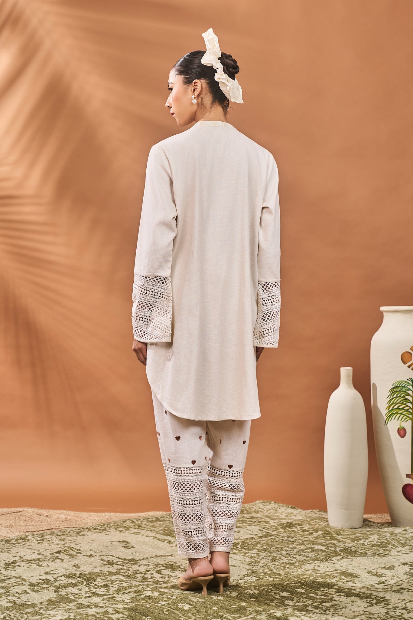 Styling: Pair this beautiful Kurta set with a pair of statement earrings and mojris. Accessories it with a beautiful clutch bag.
