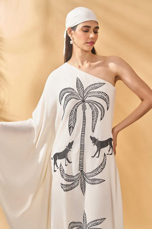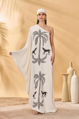 Details: One shoulder kaftan | Maxi length kaftan | Big placement print on front
