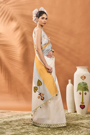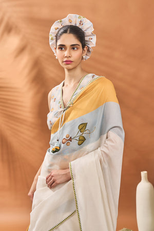 Ivory Stripe Garden Grid Saree