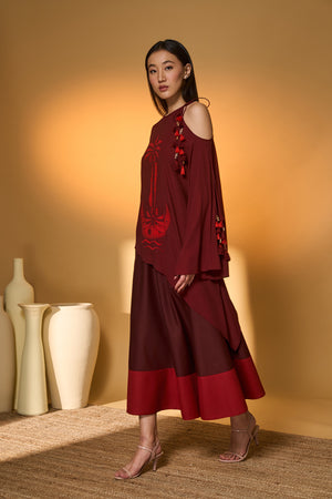 Maroon Lunar Lagoon Skirt Set