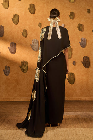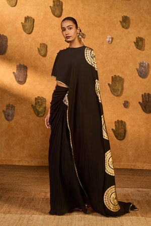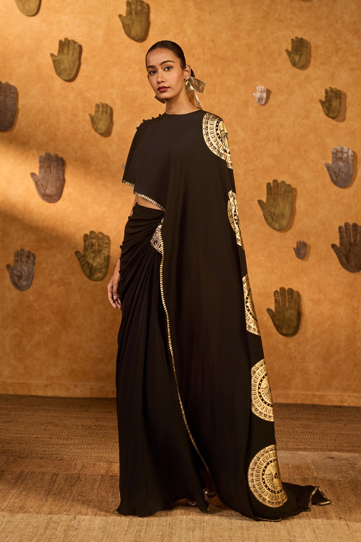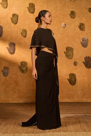 Fabric: Cape blouse- Crepe | Draped Skirt- Crepe