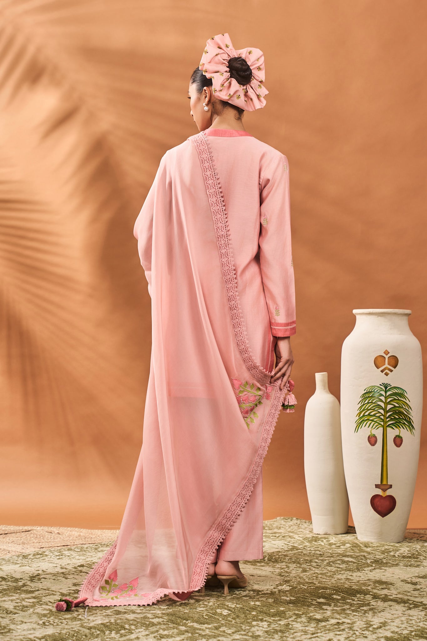 Styling: Pair this beautiful Kurta set with a pair of statement earrings and mojris. Style it with our beautiful organza dupatta draped elegantly over one shoulder for a more elevated look. Accessories it with a potli bag.