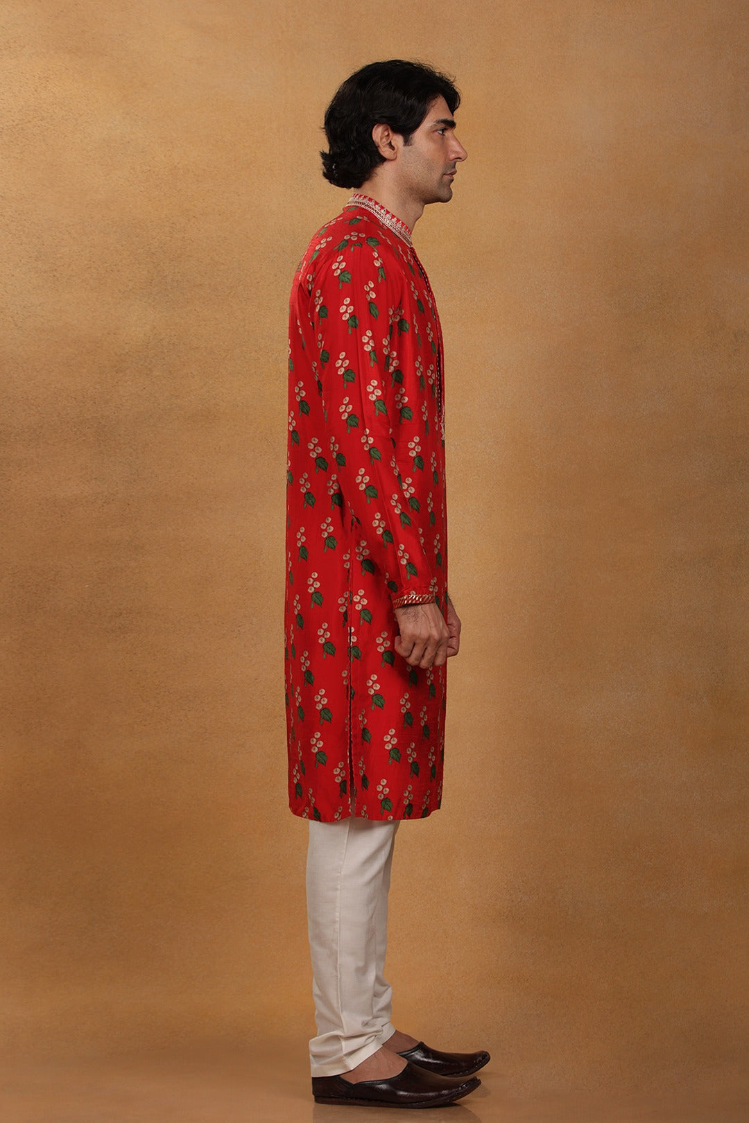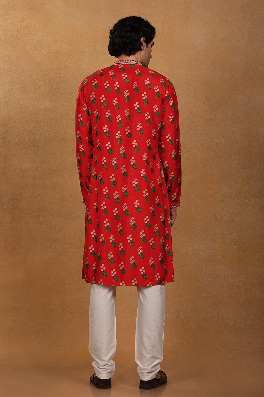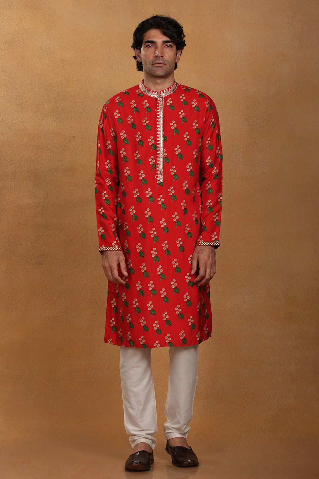 Details: Red Cotton Candy Kurta - Kurta comes with Mandarin Collar and Placket embellished with embroidered border to dazzle at special occasion!