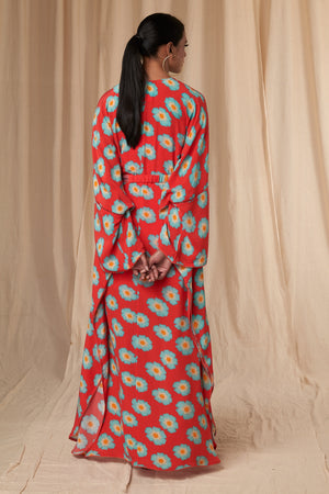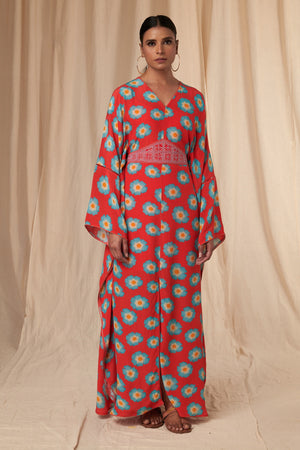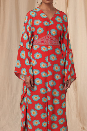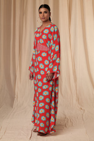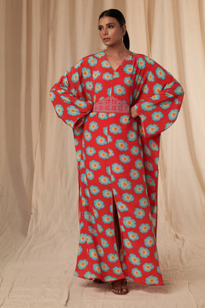 Red Crazy Daisy Kaftan Dress with Belt