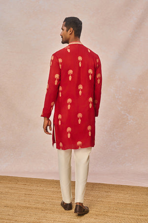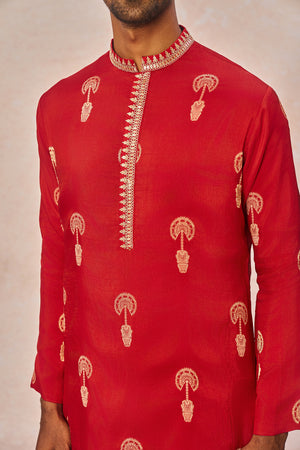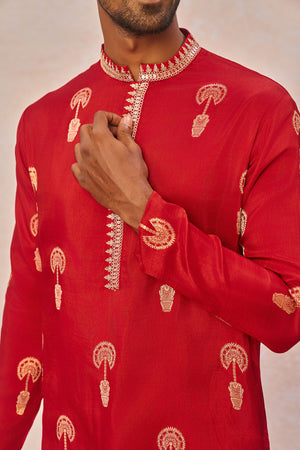 Red Jacquard Kurta Set