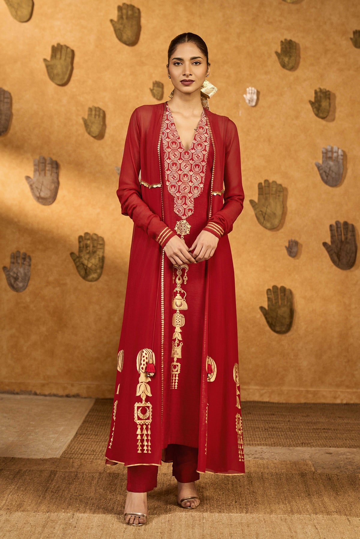 Fabric: Kurta- Raw Silk | Pants- Raw Silk | Jacket- Georgette