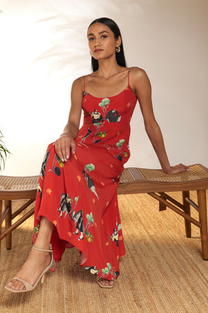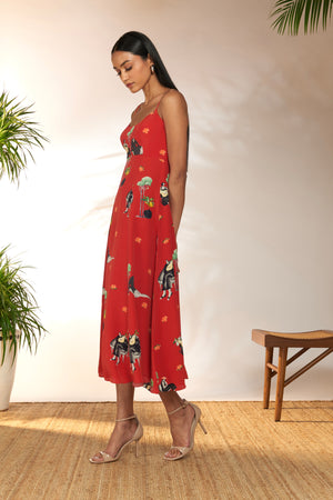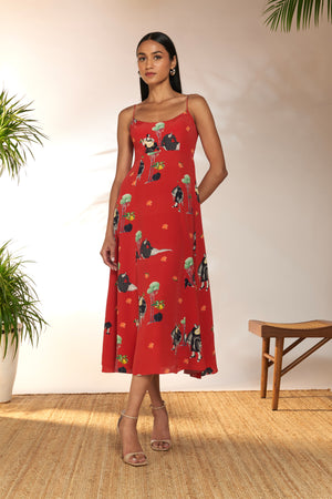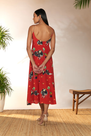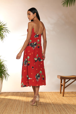 Details: Red Tropicool Backless Dress - Fit and flare | Spaghetti strap | Empire waist | Centre back zipper closure