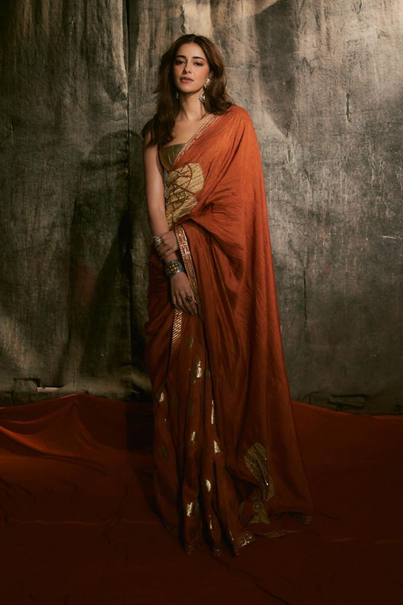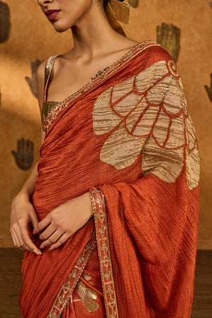 Rust Windrose Crushed Saree