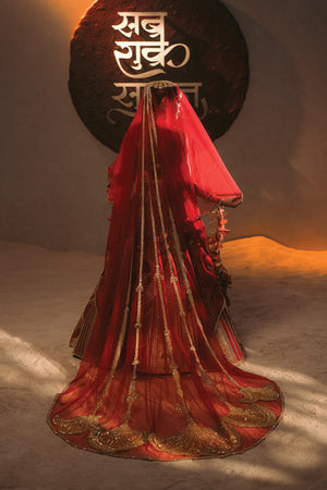 Fabric: Lehenga - Tissue, Heavy Raw Silk | Blouse - Heavy Raw Silk | Dupatta 1 - Organza + Tissue | Veil - Net