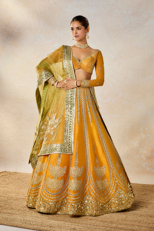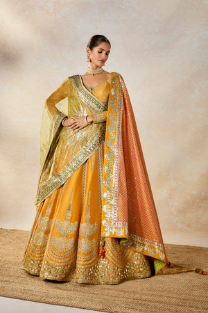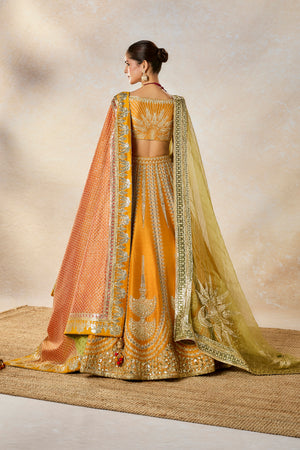 Fabric: Lehenga - Raw Silk | Blouse - Raw Silk & Tulle | Dupatta 1- Silk Organza | Dupatta 2- Pure Silk