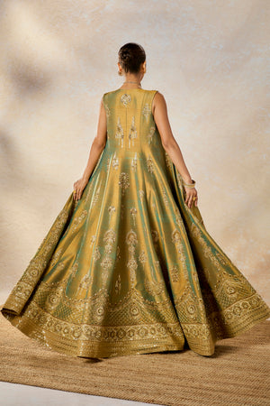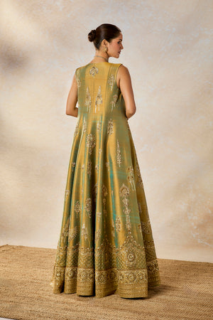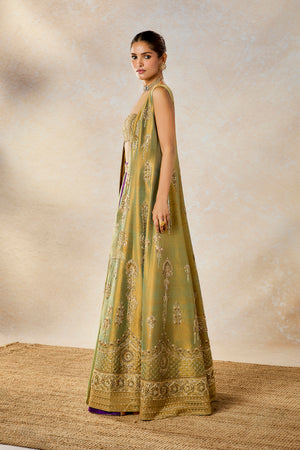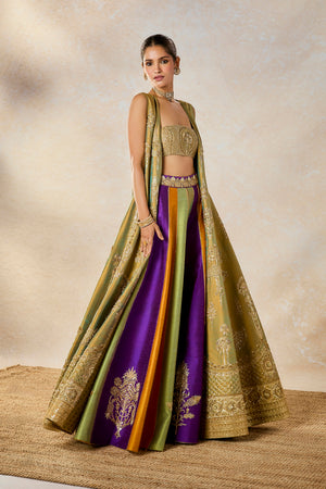 Description:The Kesar Varak Long Jacket Lehenga Set is a stunning two-tone ensemble featuring a beautifully embroidered long jacket adorned with intricate motifs like Raj Pankh, Baug Taj, and Anasam Phool, adding a regal and traditional touch. The set is paired with a delicately embroidered bustier that perfectly complements the jacket’s detailing. The lehenga, in a rich multi-colored palette, mirrors the same motifs, creating a cohesive and elegant look. Comes with a separate cancan skirt.