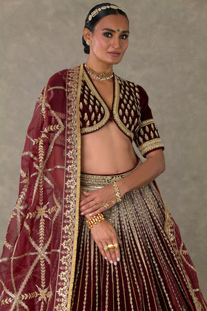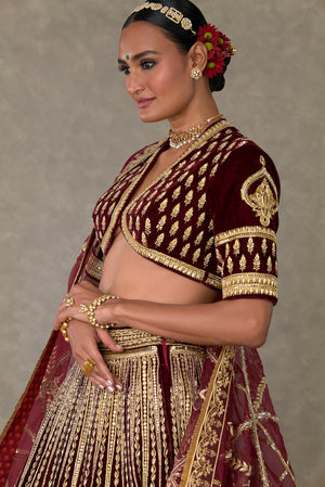 Fabric: Lehenga- Silk Velvet | Blouse- Silk Velvet | Dupatta- Silk Organza